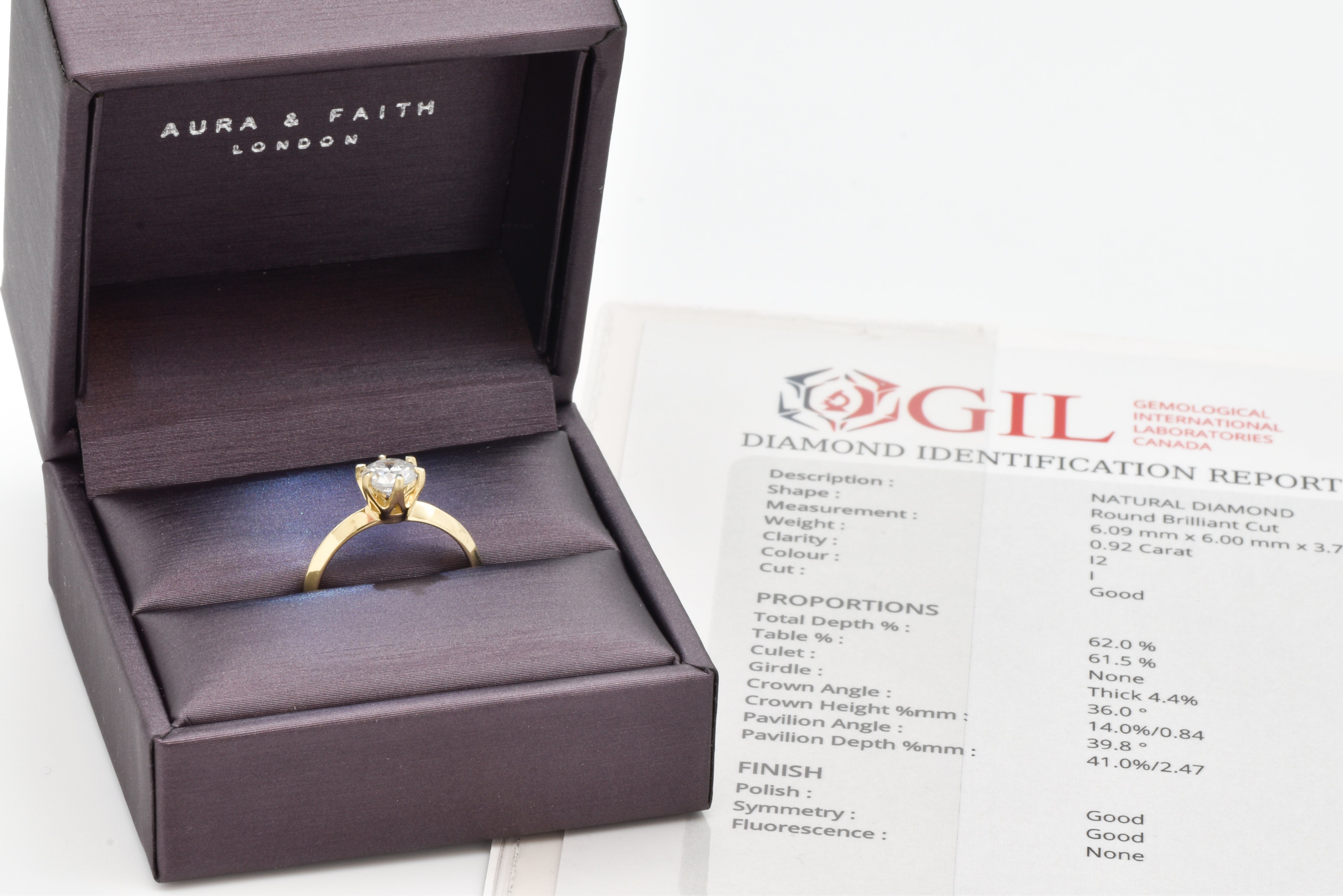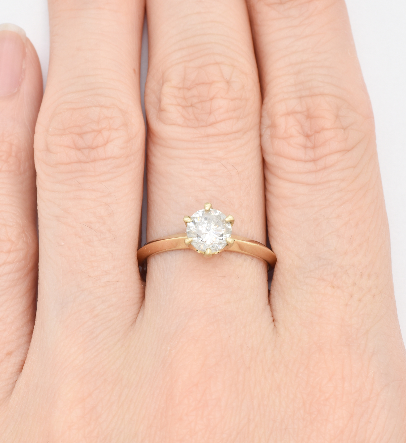 This ring is set with a CERTIFIED Natural Diamond with a stunning brilliance - perfect when looking for a magical piece of jewelry. Genuine Diamond at 6mm, 0.93 Carat.