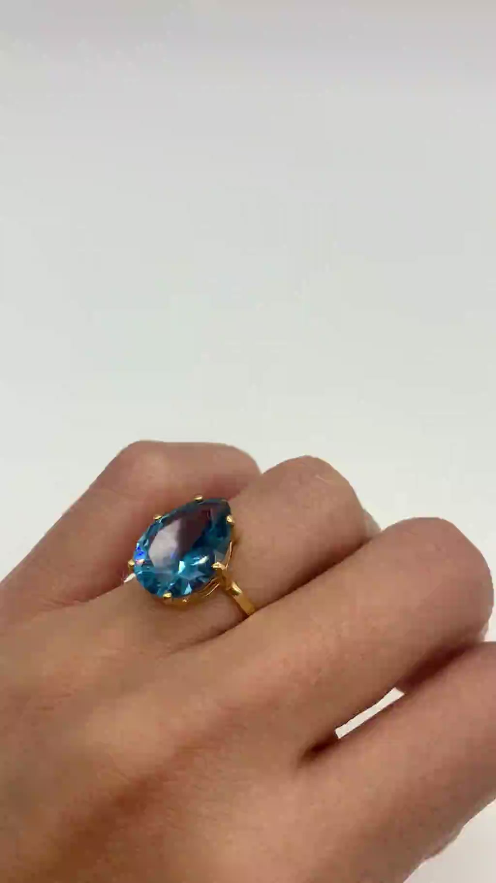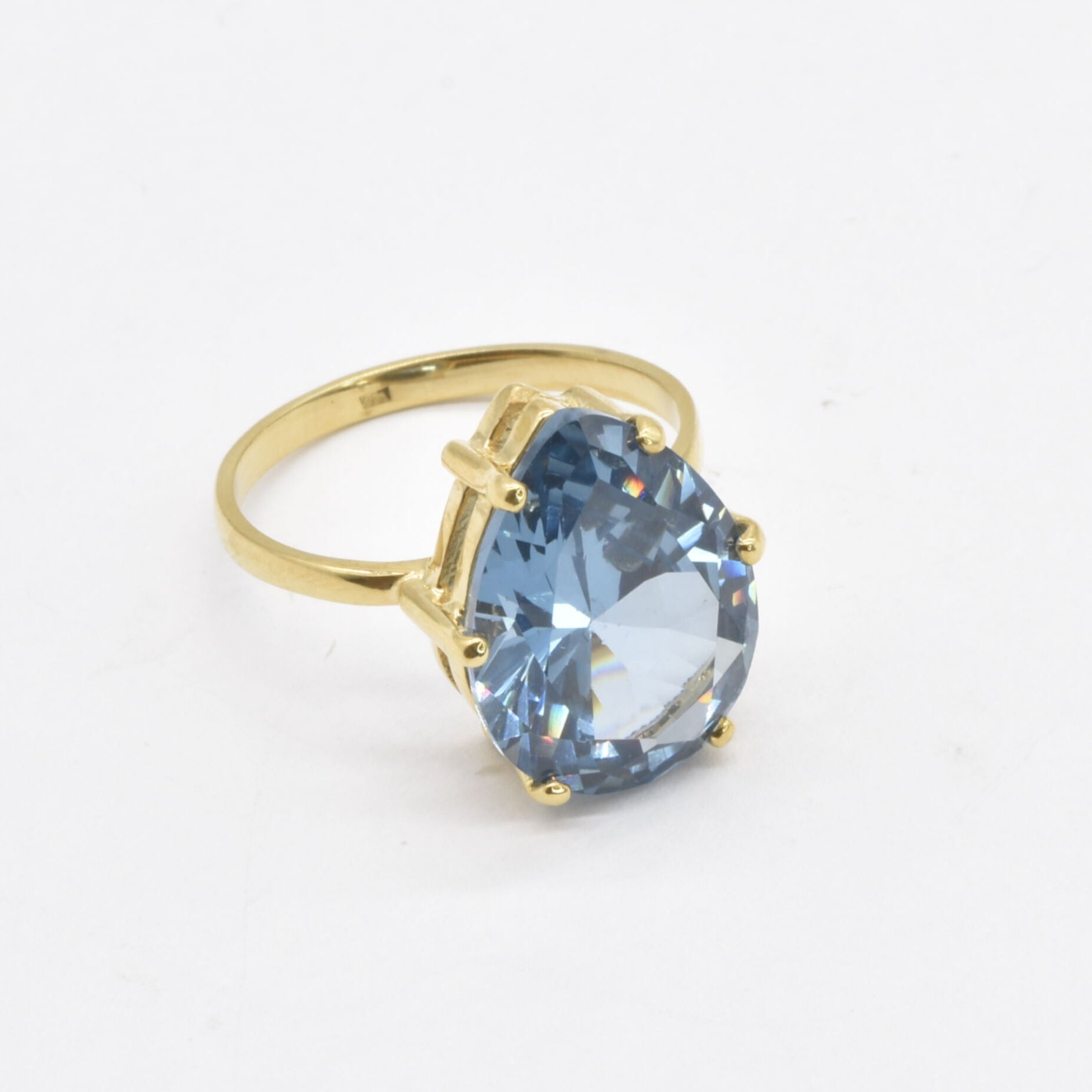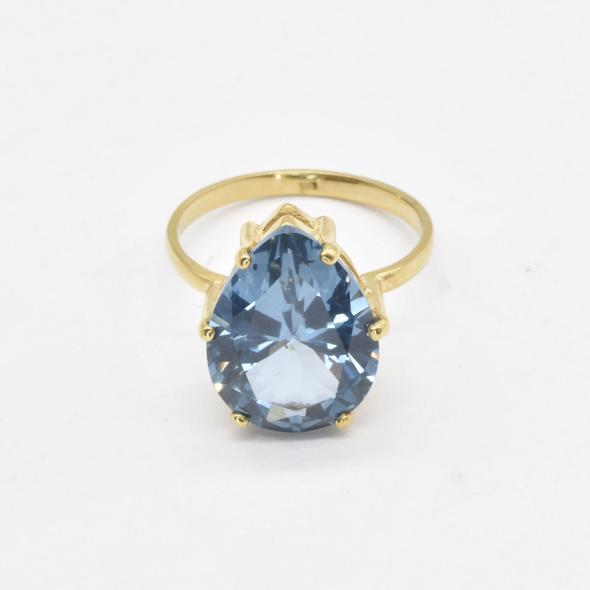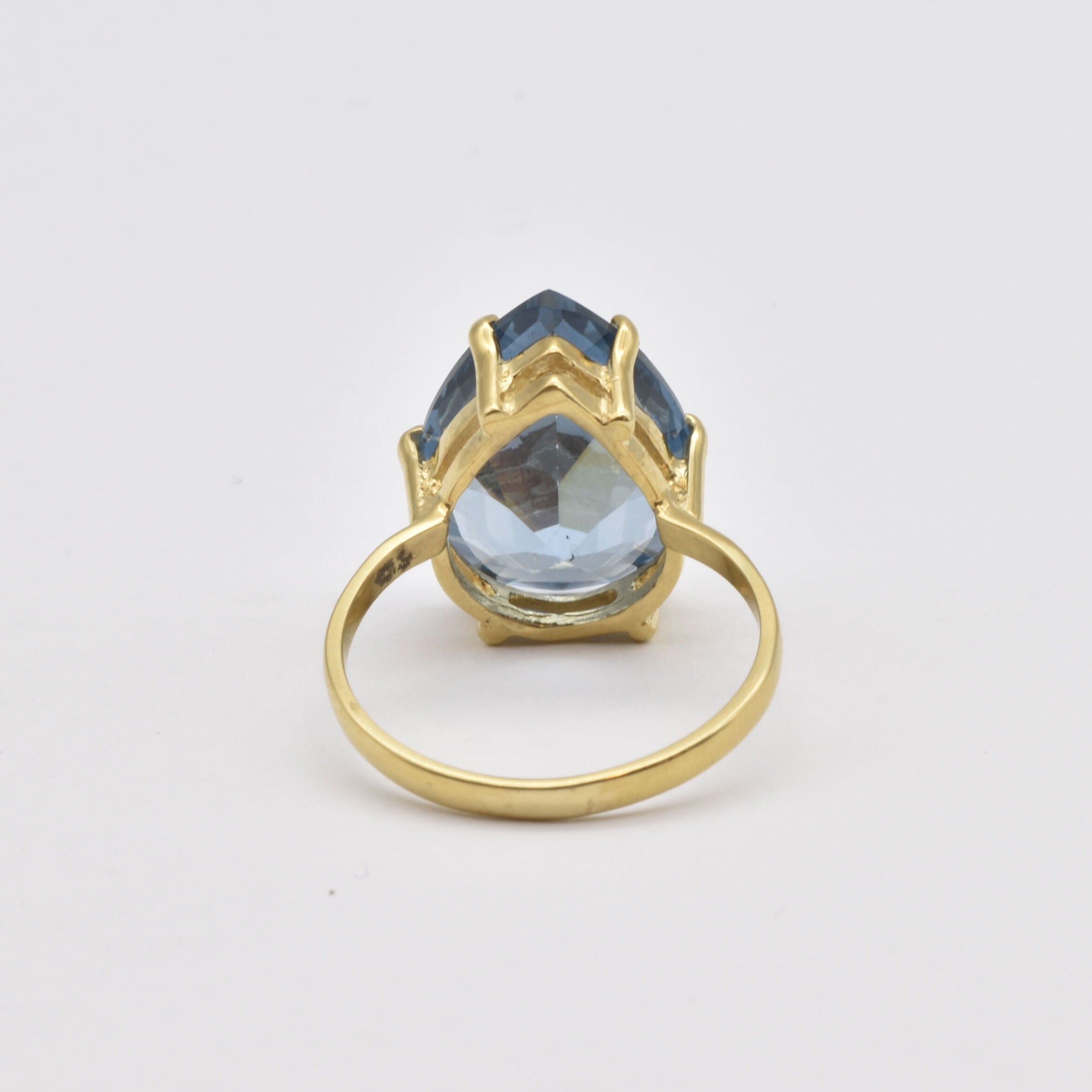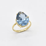 Gold Aquamarine Ring - Blue Teardrop Ring - Large Teardrop Ring