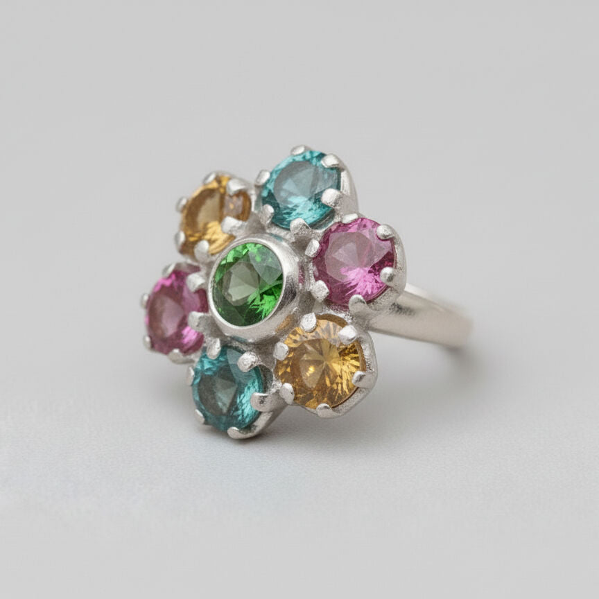 Emerald Cluster Ring in 925 Sterling Silver, May Birthstone, perfect for daily wear and special occasions.