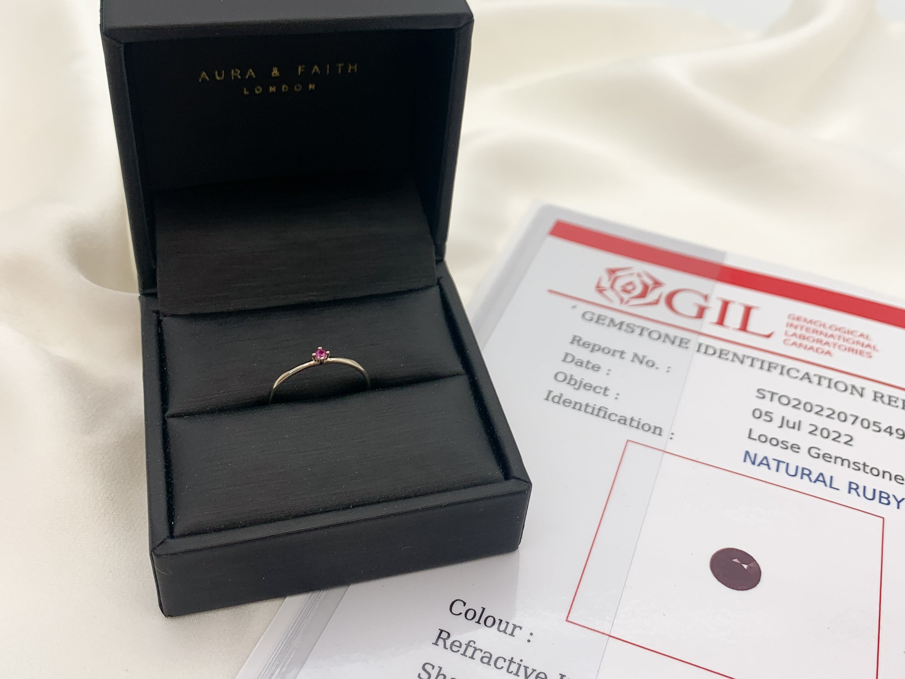 Certified Ruby Gold Ring set with Genuine Ruby, size 2 millimetres diameter, 0.03 Carats.