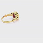 Elegant 18k Gold Vermeil Ruby Ring featuring an oval red ruby, perfect for birthdays and special occasions.