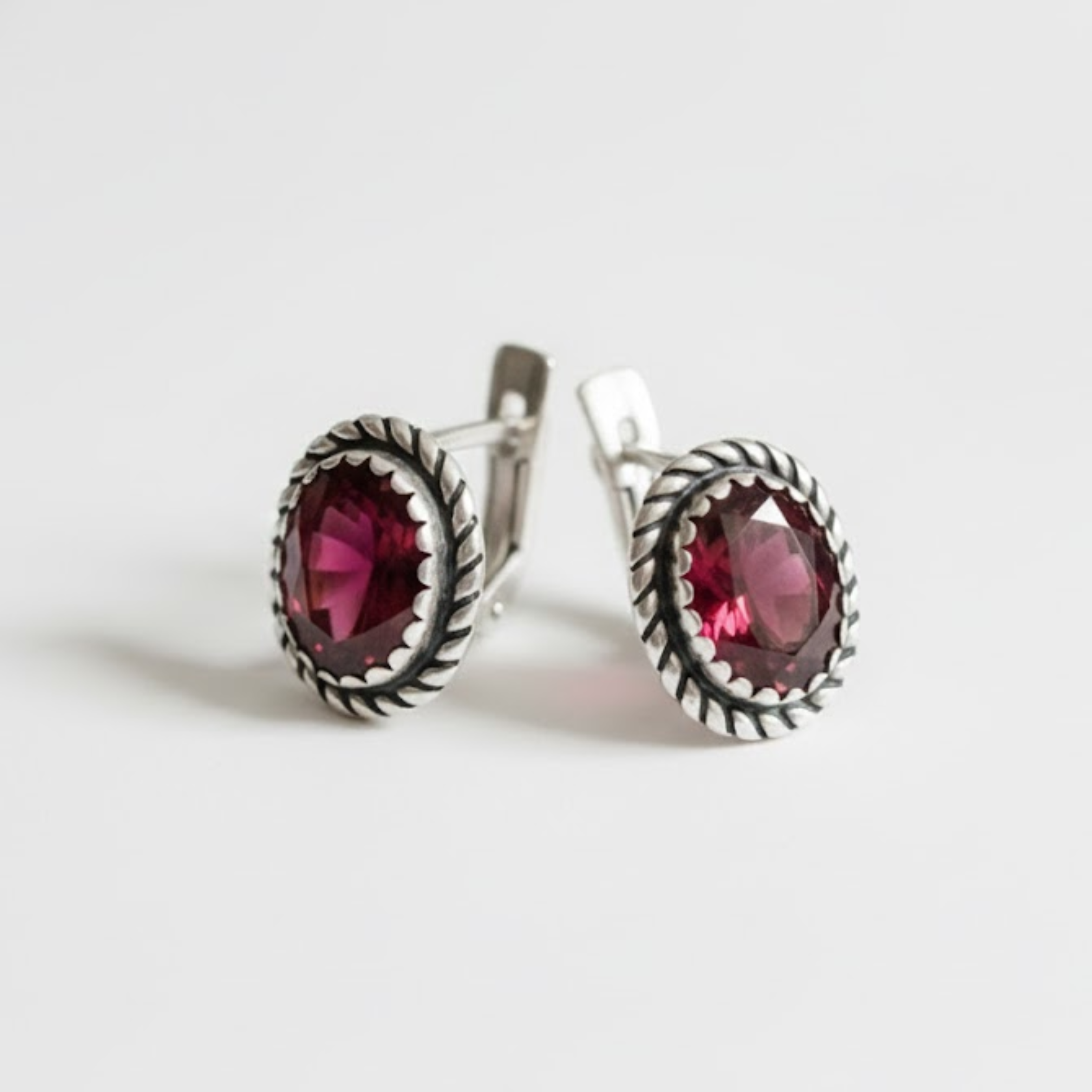 Stunning Created Ruby Earrings in 925 Sterling Silver, a lovely gift for July birthdays, symbolizing purity and devotion.