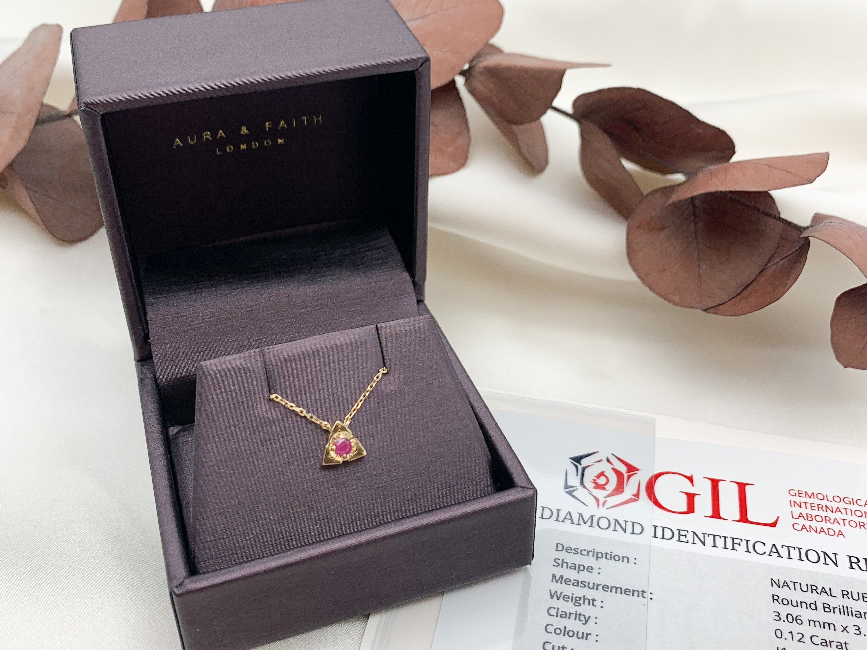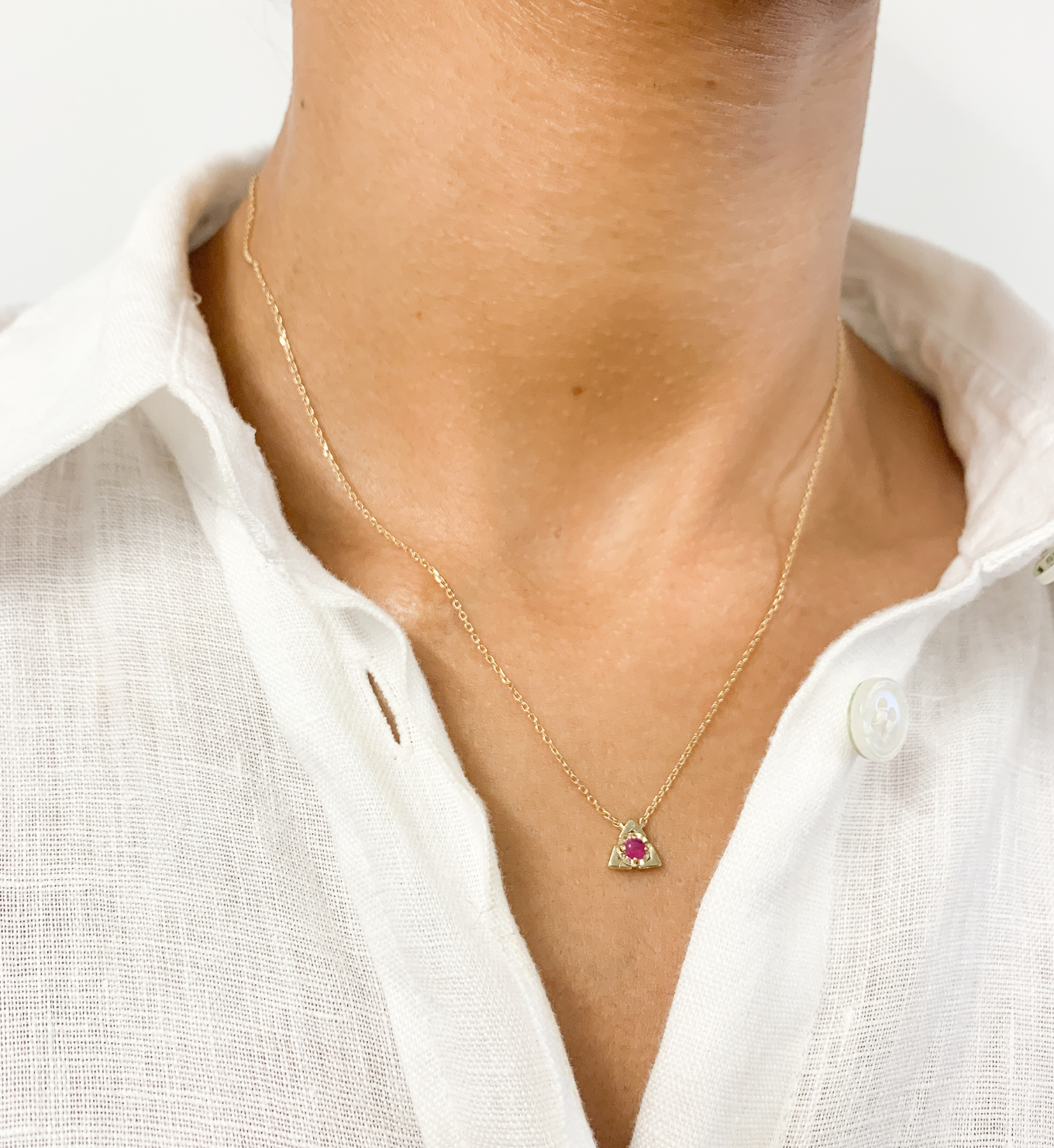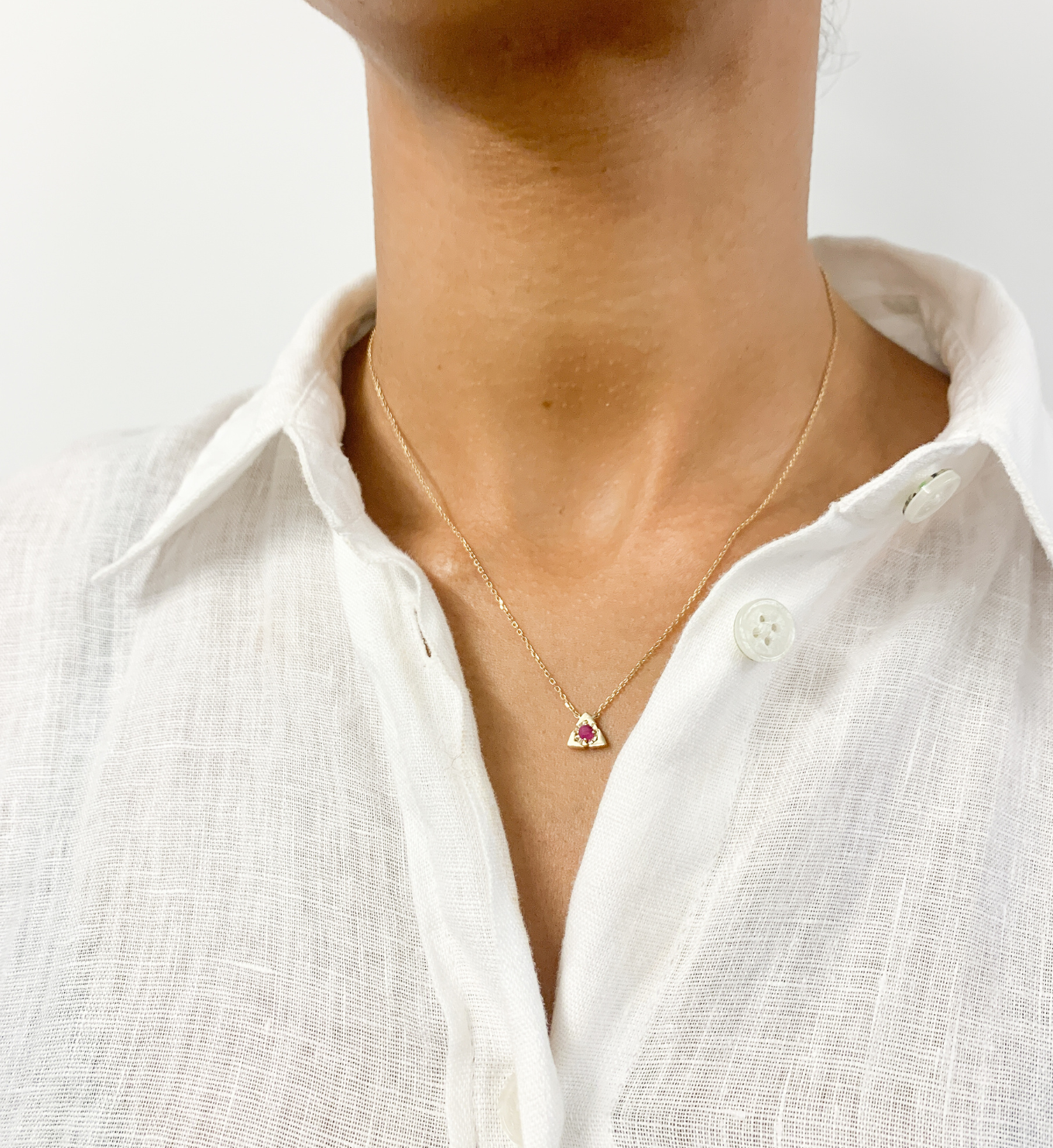 Certified Genuine Ruby Pendant - REAL 14k Gold Triangle Necklace - Dainty Ruby Gold Pendant