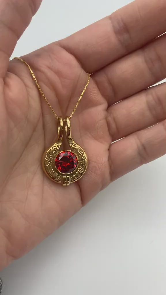 Gold Ruby Pendant - Egyptian Ruby Necklace - Red Vintage Pendant