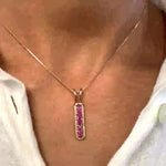 Gold Ruby Pendant - Red Vertical Necklace - Rose Gold Necklace