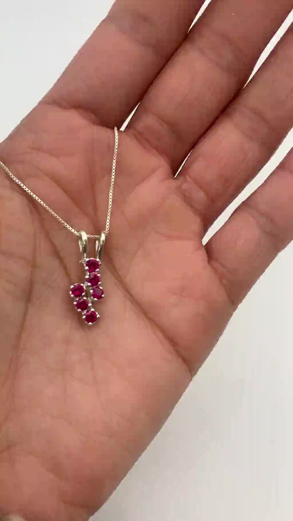 Red Ruby Pendant set with a Created Ruby in a perfect diamond cut, clarity & red color, at 3mm size each (1 Cts combined).