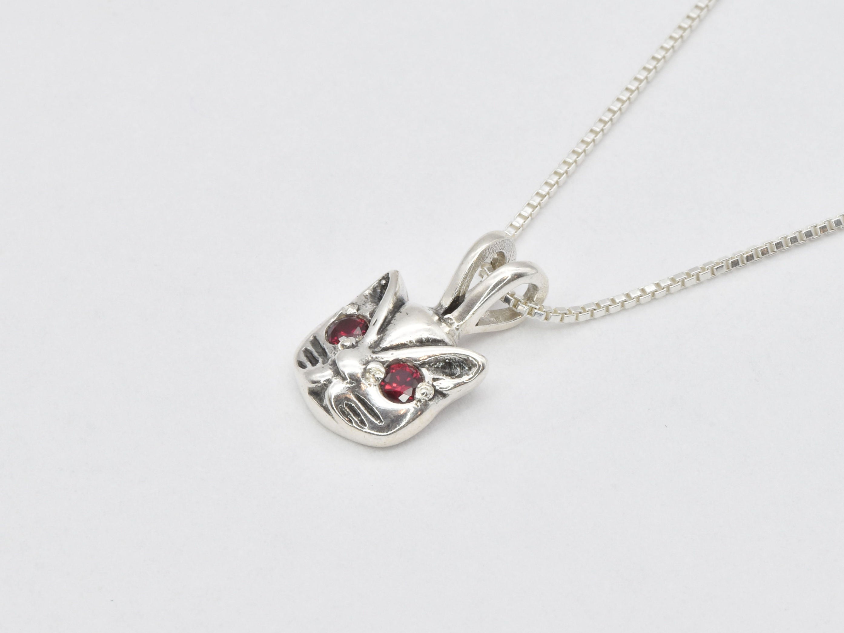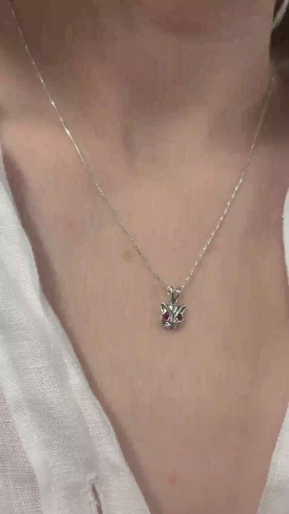 Ruby Cat Pendant - Red Eyed Cat Necklace, Feline Love Pendant