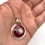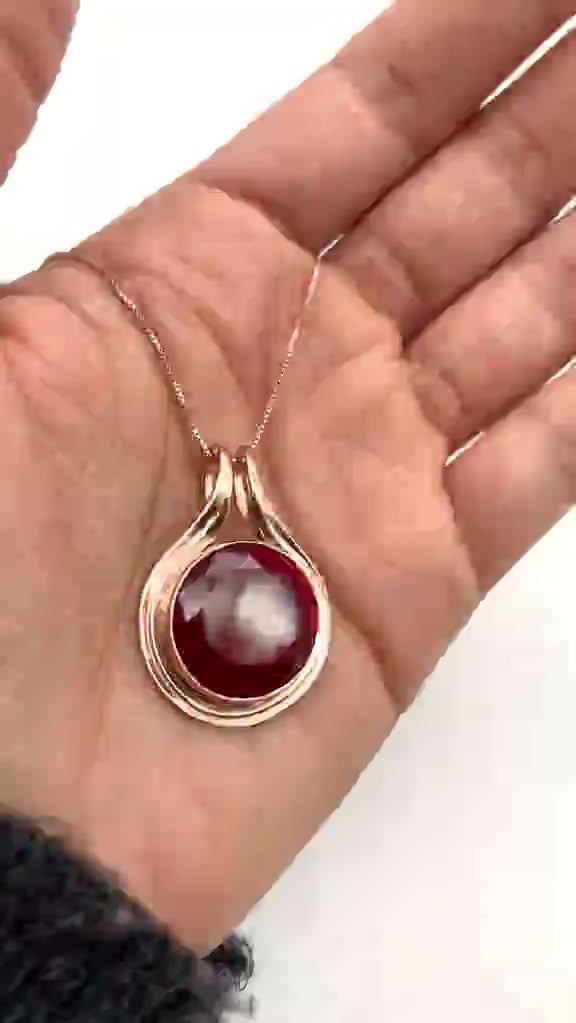 Ruby Statement Necklace - Round Red Pendant - Rose Gold Ruby Necklace