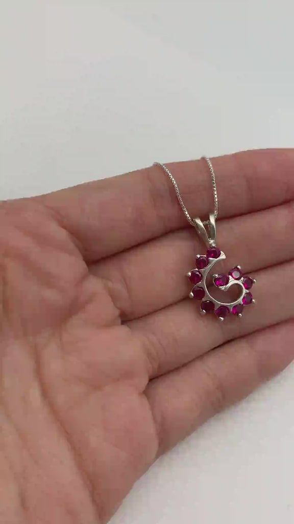 Spiral Ruby Pendant - Silver Ruby Pendant - July Birthstone Necklace