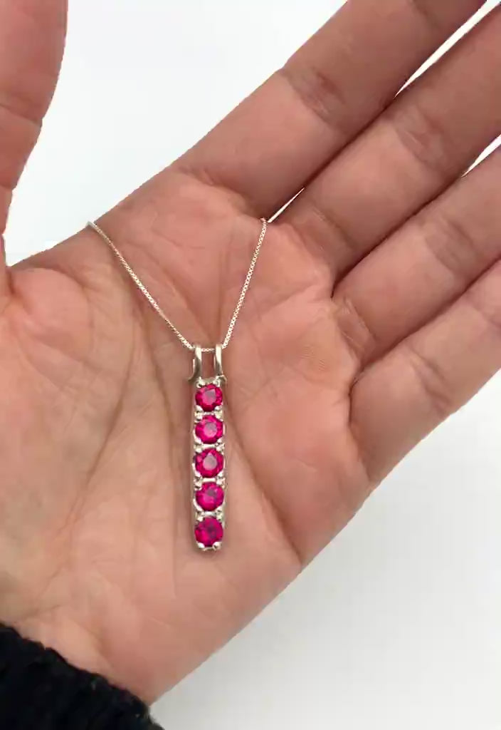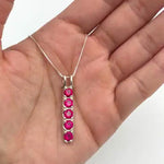 Vertical Ruby Necklace set with a Created Ruby in a diamond cut & stunning red color, at 5mm each (2.5 Cts combined).