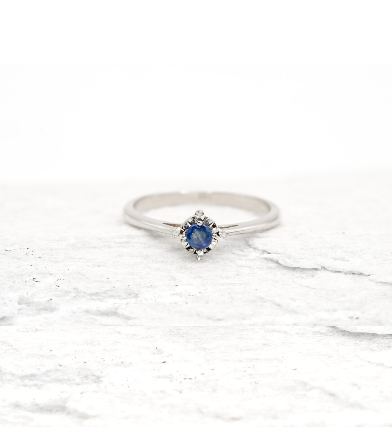 Natural Sapphire Ring set with Sapphire, size 2 millimeters diameter, 0.03 Carats.