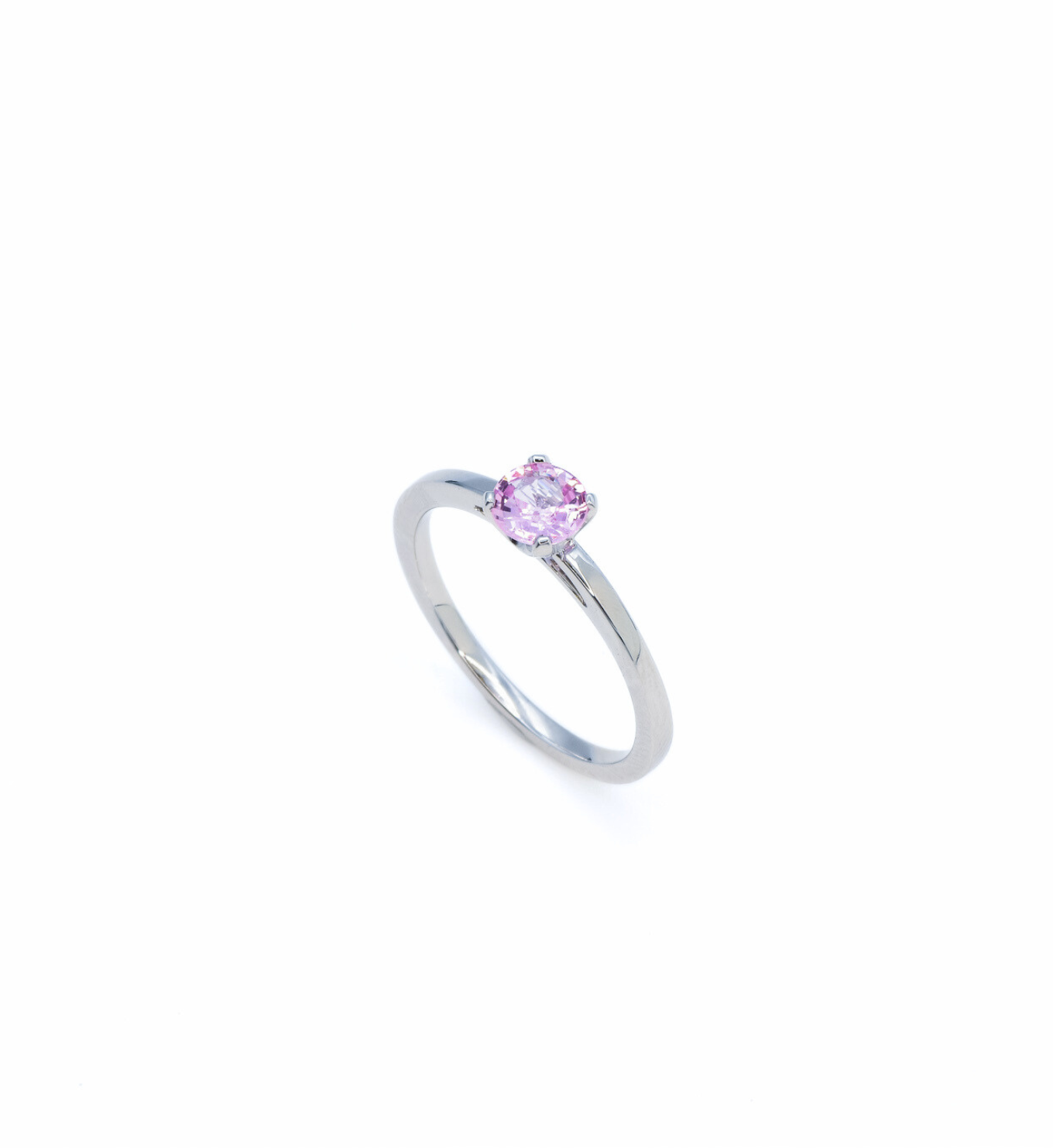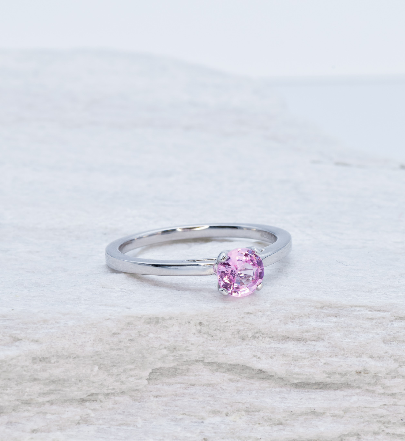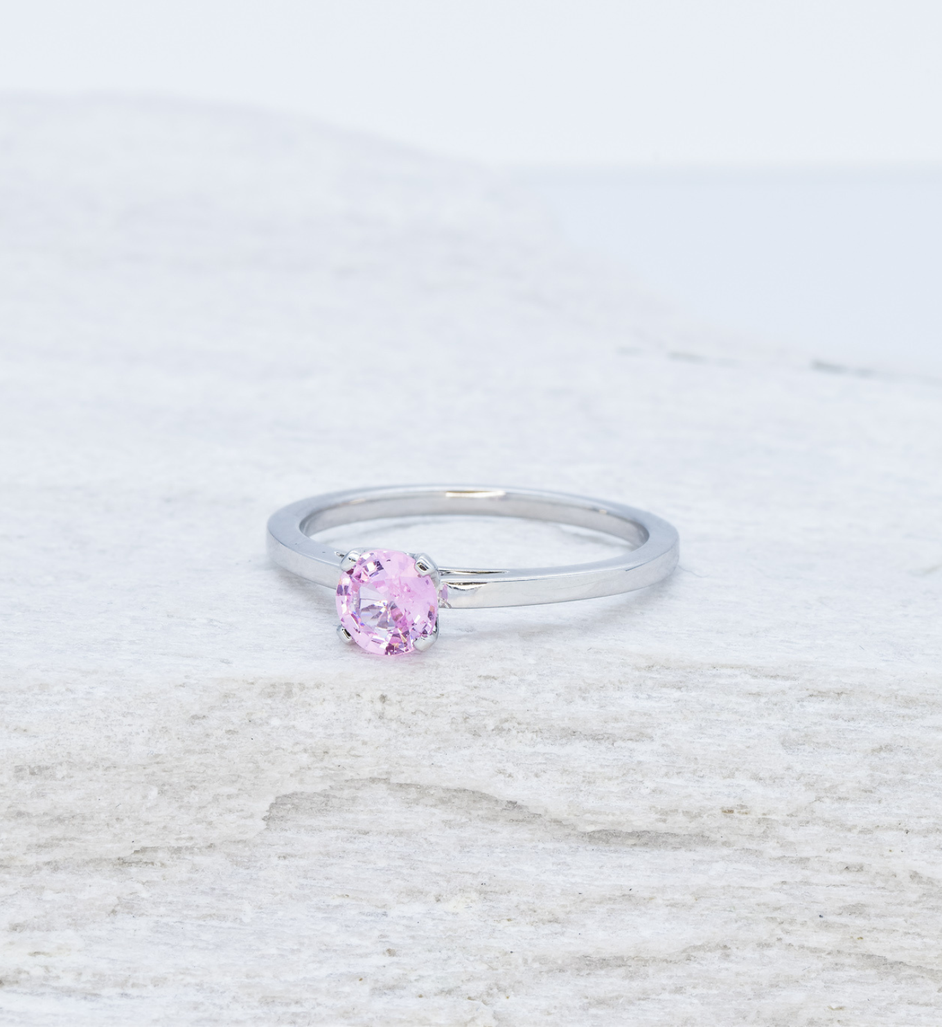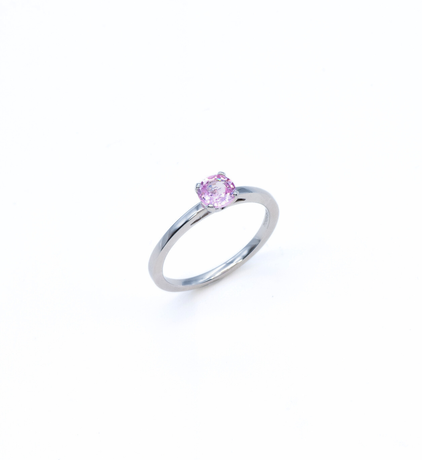 Certified Sapphire Ring set with Natural Pink Sapphire, size 5 millimeters diameter, 0.5 Carats.
