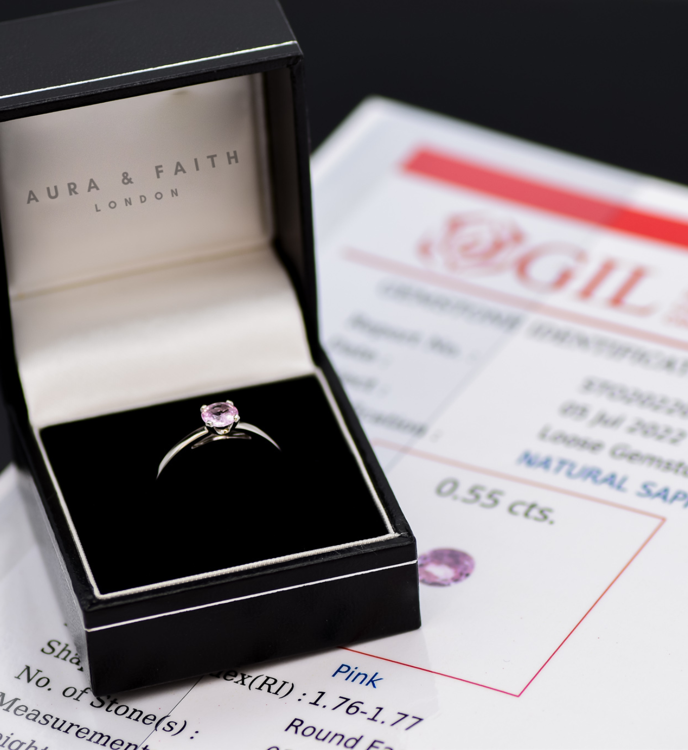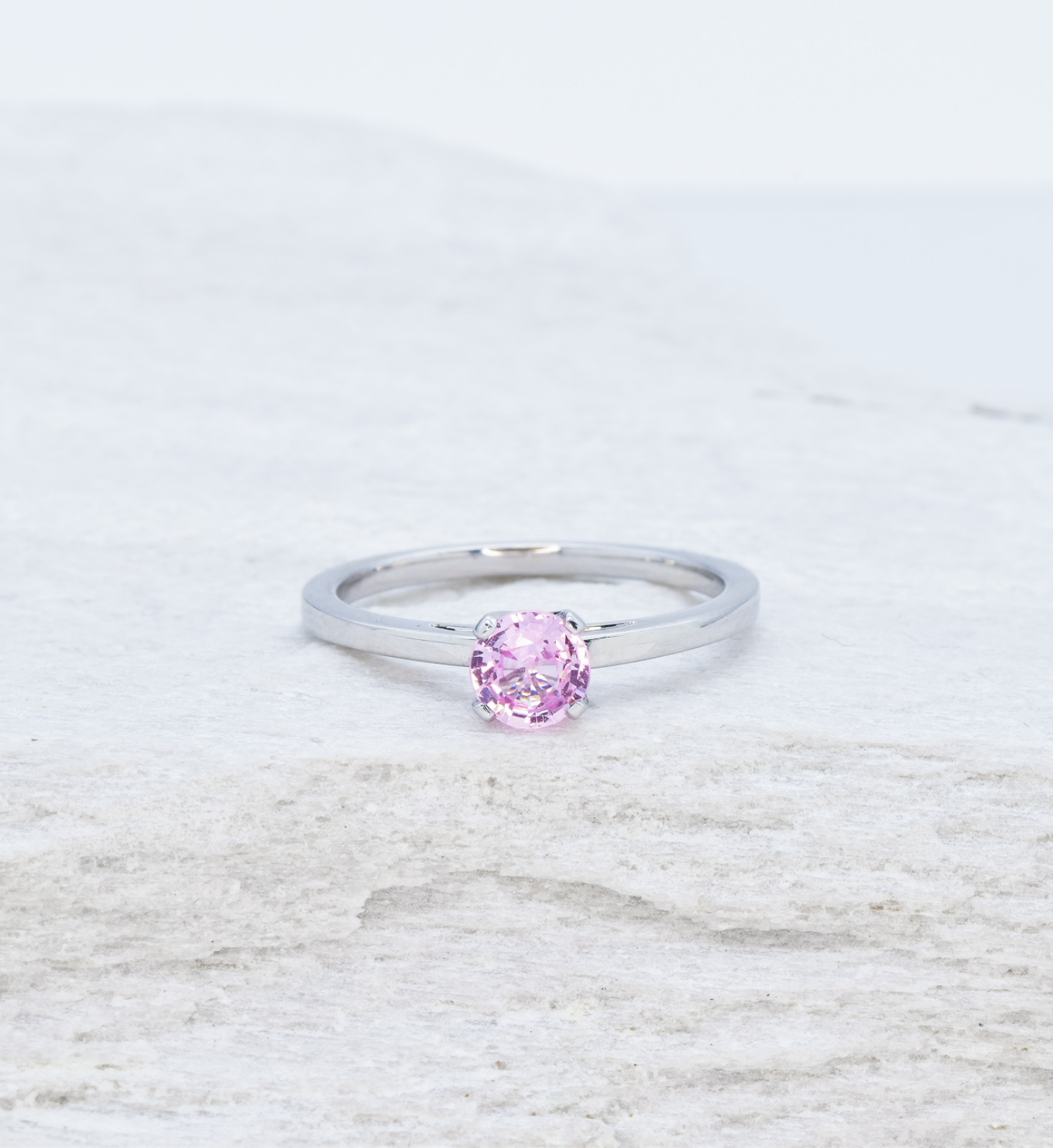 Certified Sapphire Ring - Pink Sapphire Ring - Solid White Gold Ring