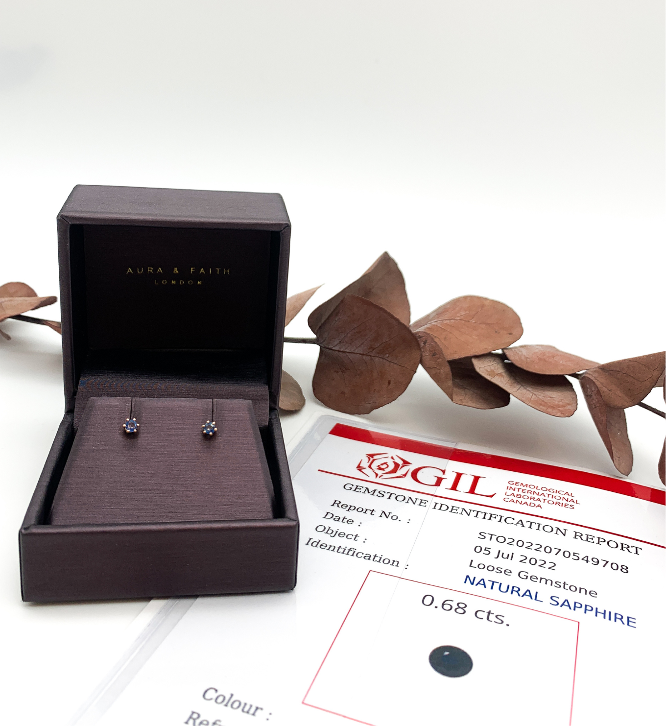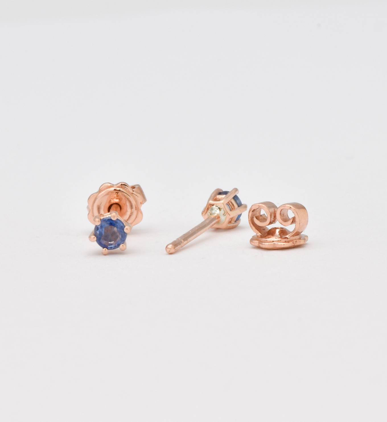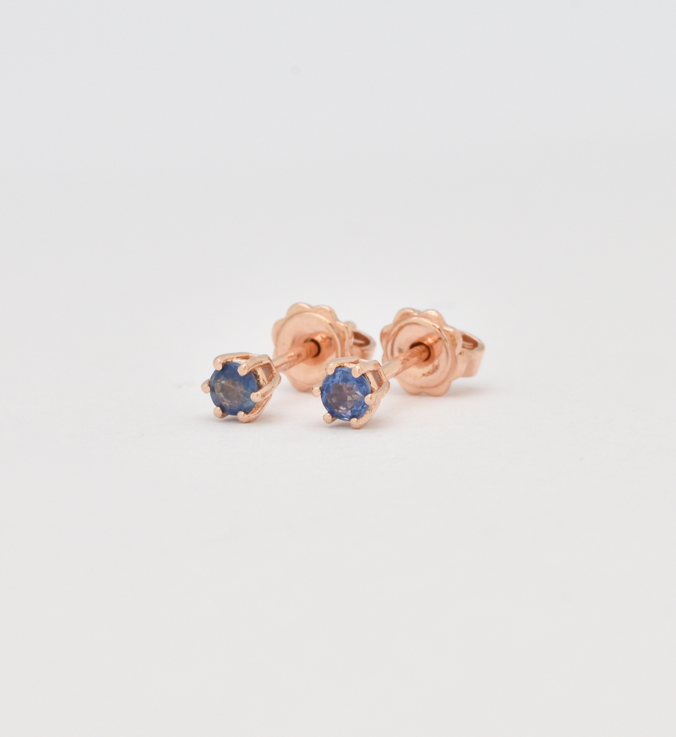 Dainty Certified Sapphire Studs set with Genuine Sapphire, size 3 millimetres diameter each, 0.22 Carats a pair.