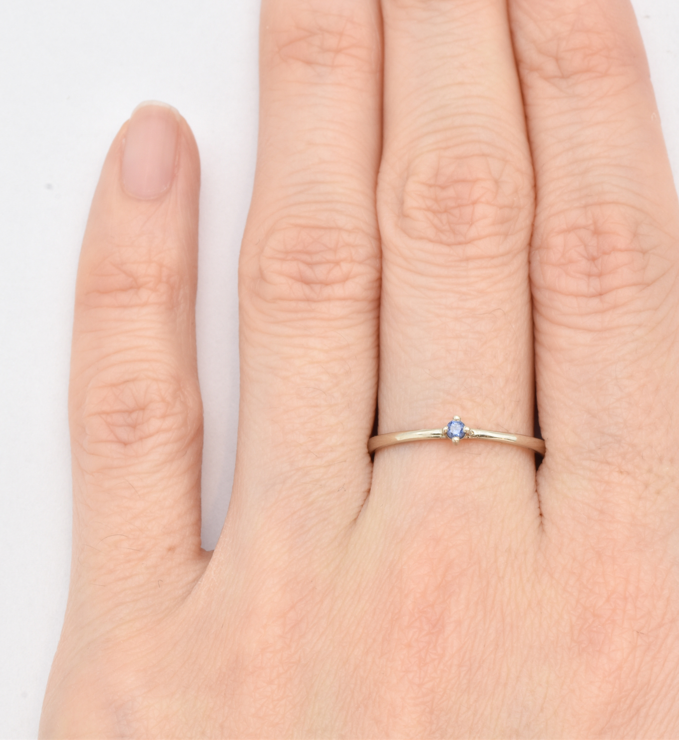 Dainty Sapphire Ring set with Natural Sapphire, size 2 millimetres diameter, 0.03 Carats.