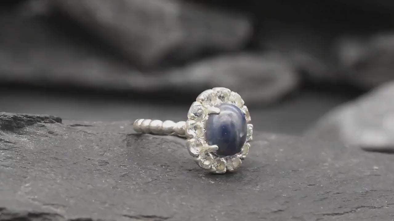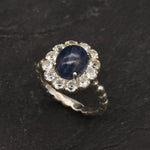 Genuine Sapphire Ring - Blue Flower Ring - Cocktail Sapphire Ring