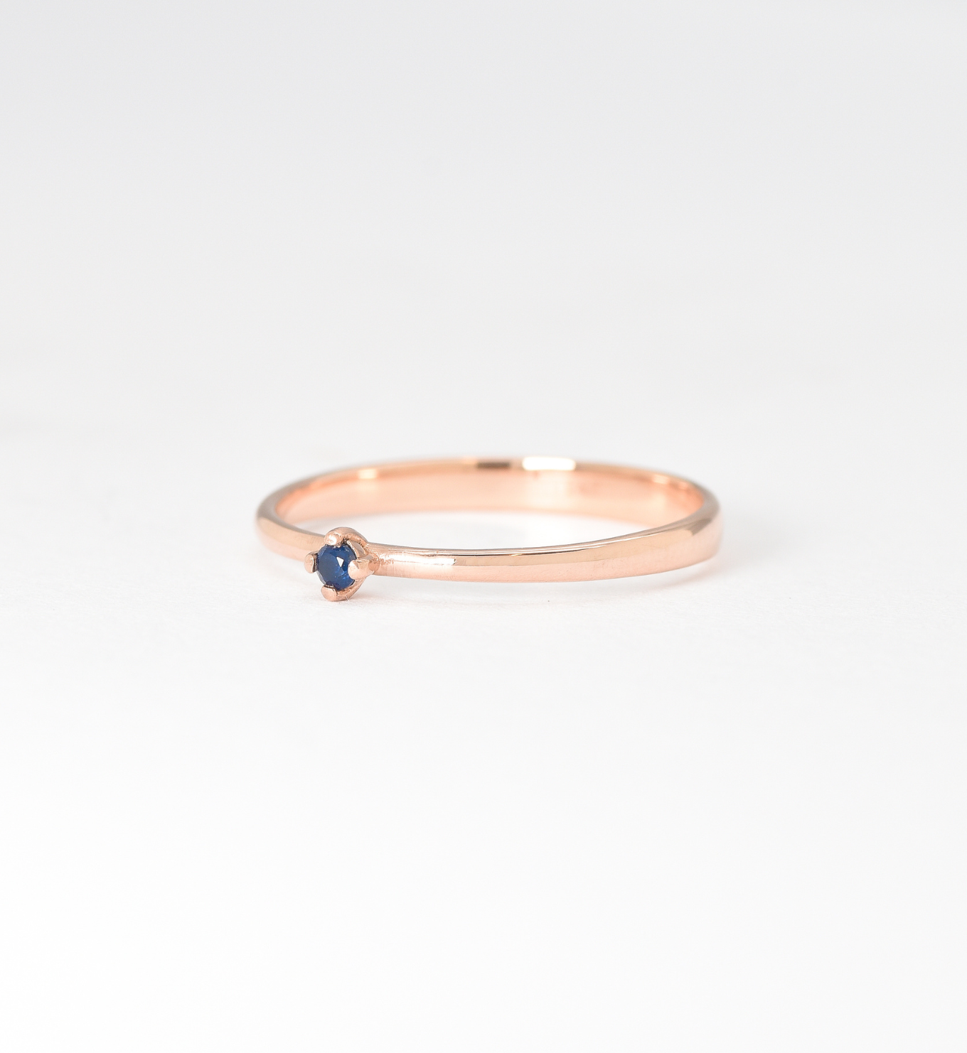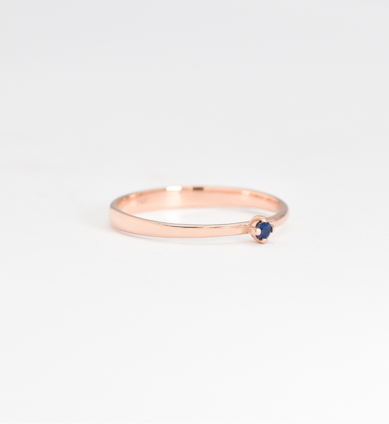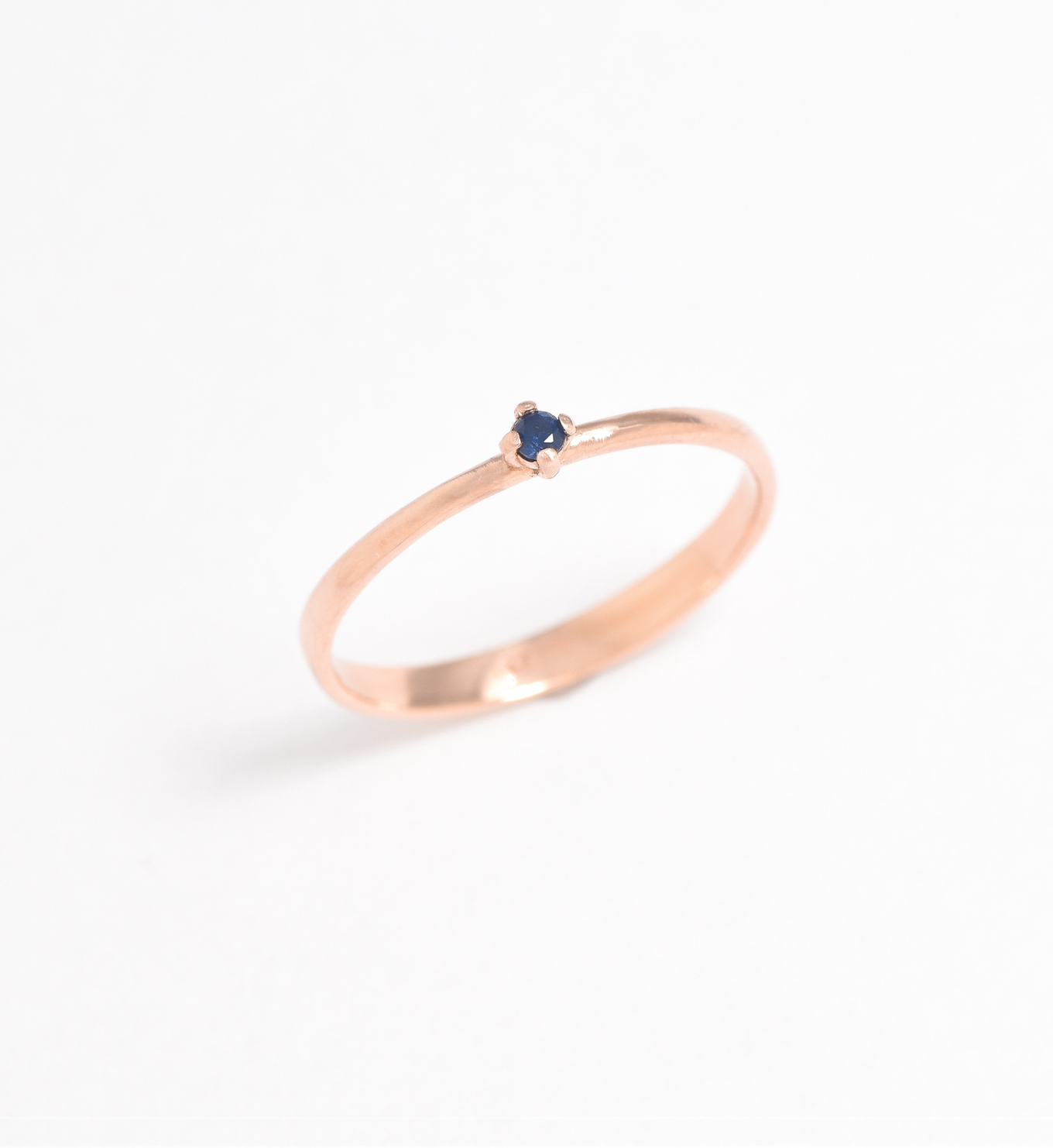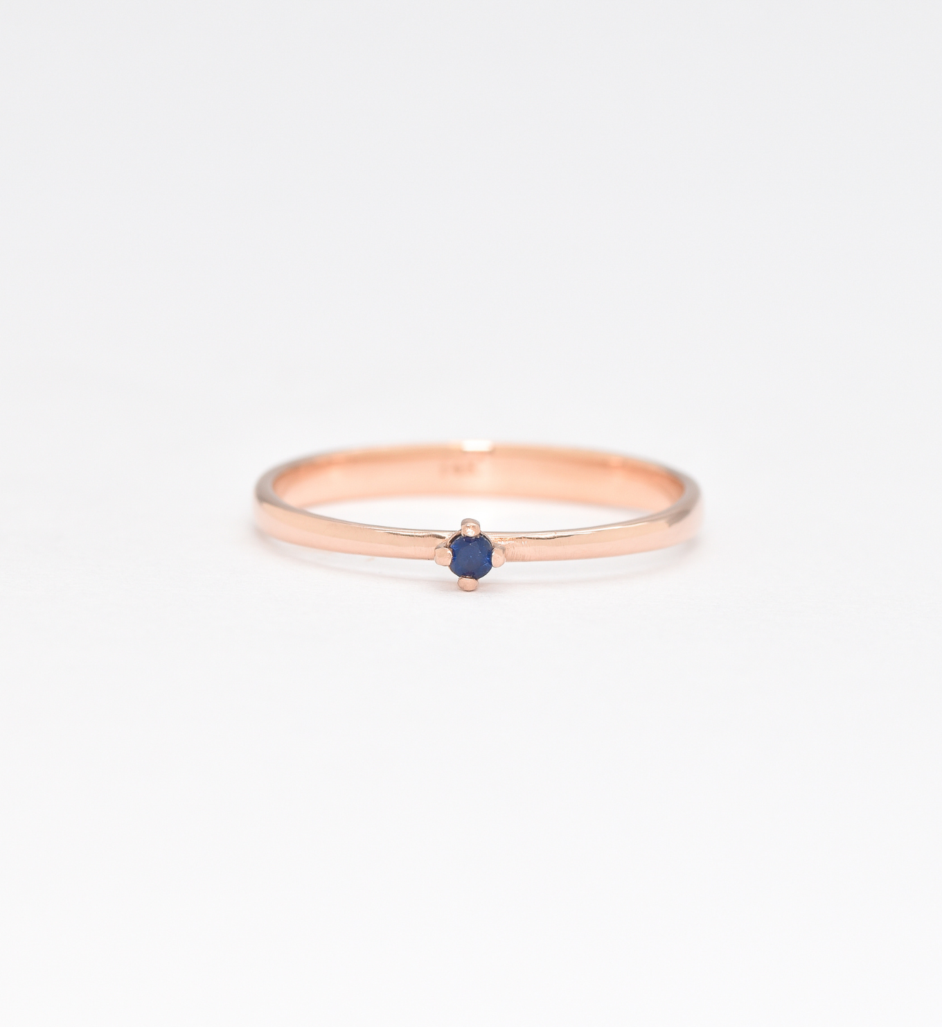 Genuine Sapphire Ring - Real 14k Rose Gold Ring - Dainty Solitaire Ring