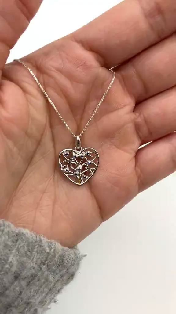 Sapphire Heart Necklace - Statement Heart Pendant - Filigree Heart Necklace