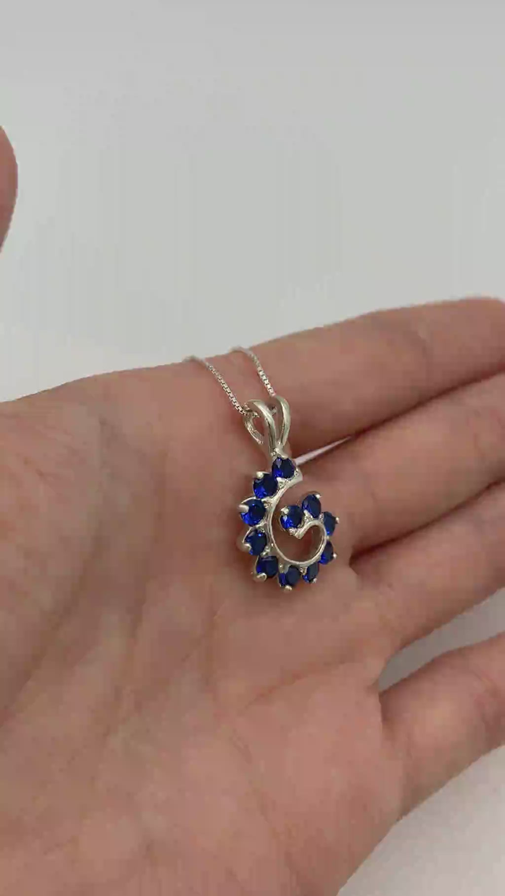 Sapphire Pendant set with Created Sapphires in a stunning blue color, at size 3mm each (2 Cts combined).