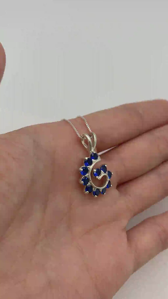 Blue Swirl Pendant - Spiral Sapphire Necklace - Vintage Statement Necklace