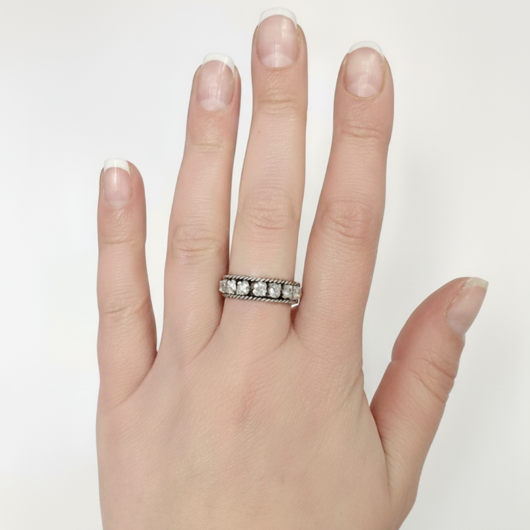 Diamond Silver Ring - Half Eternity Ring - Vintage Diamond Band