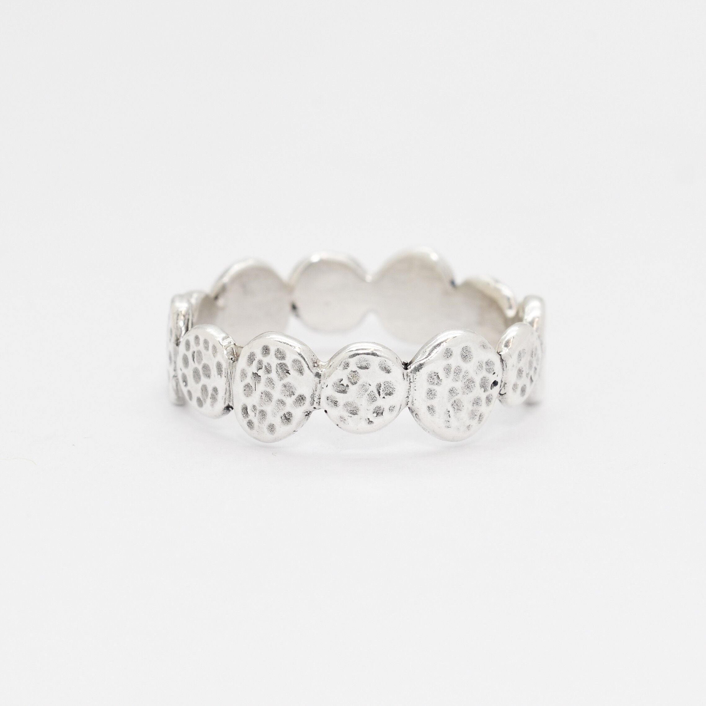 Silver Bubble Band - Hammered Silver Ring - Wide Boho Ring