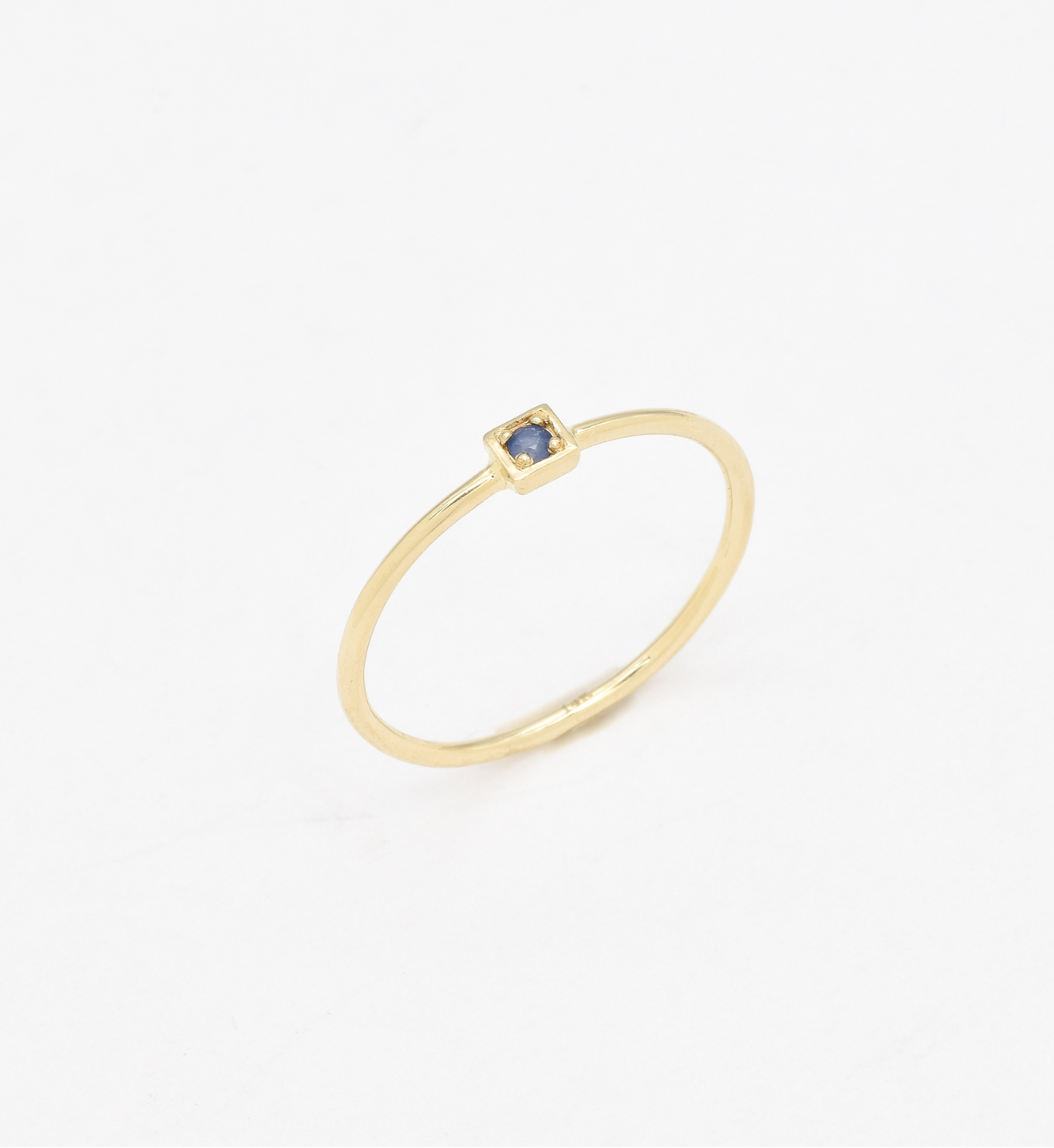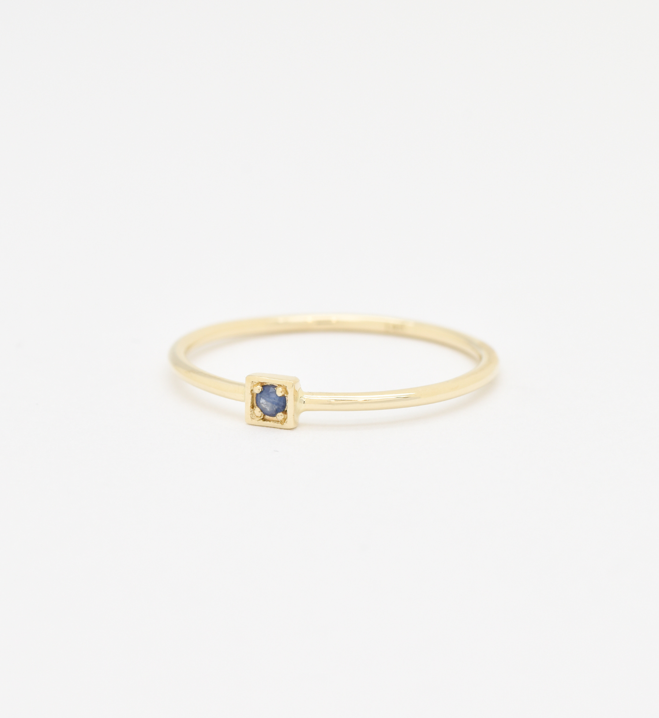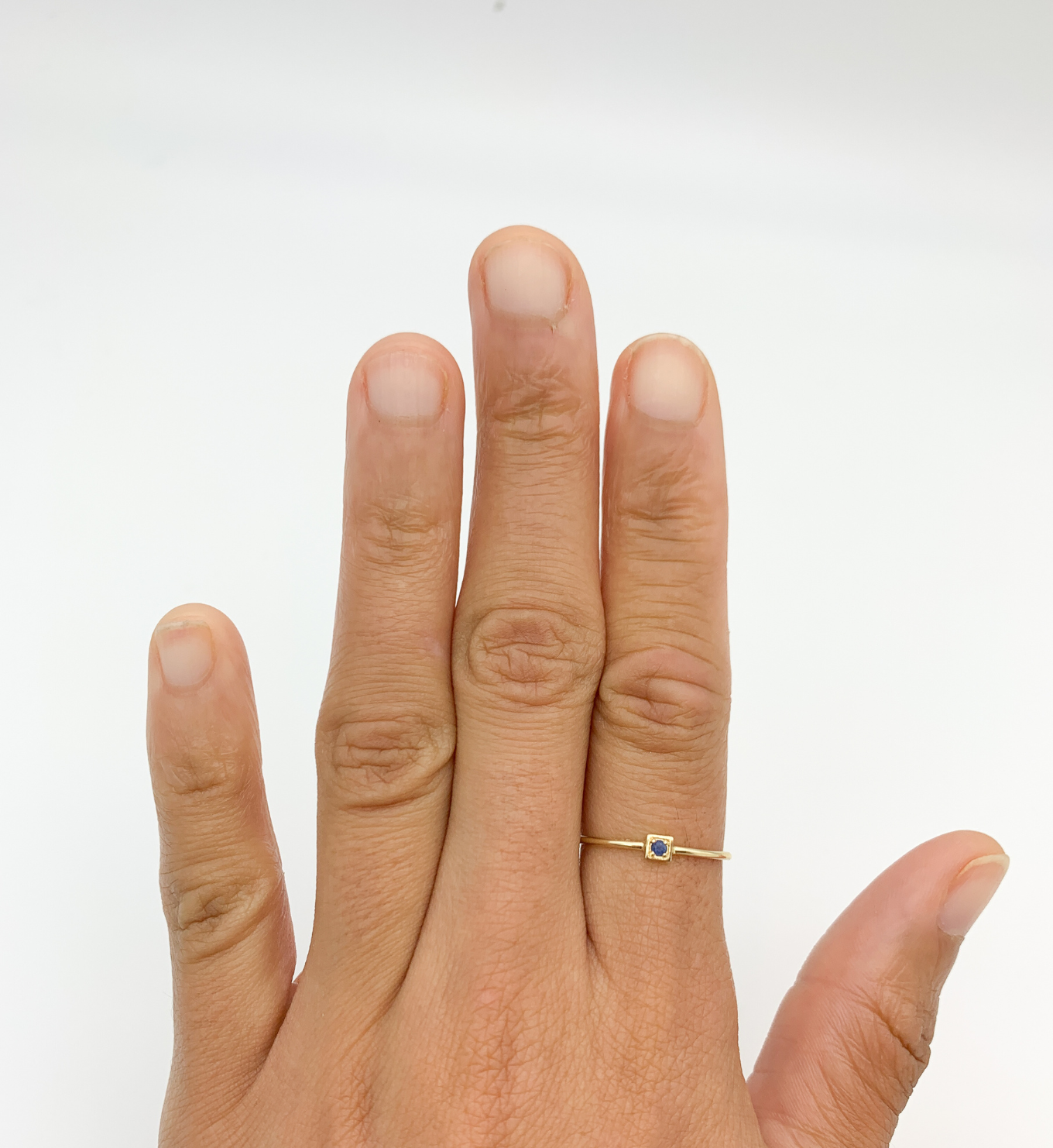 Dainty Sapphire Gold Ring set with Genuine Sapphire, size 2 millimetres diameter, 0.03 Carats.