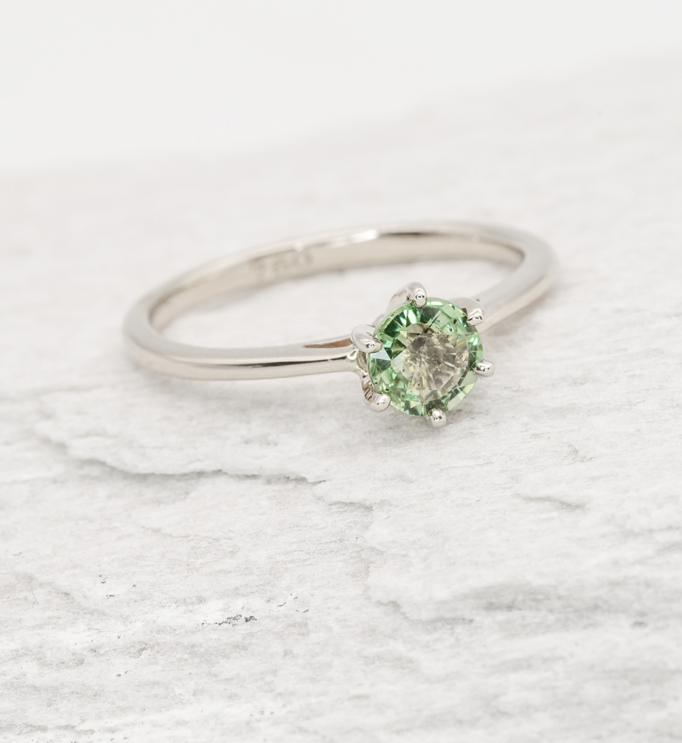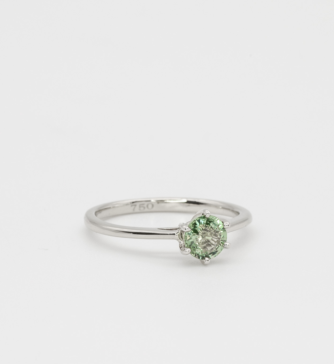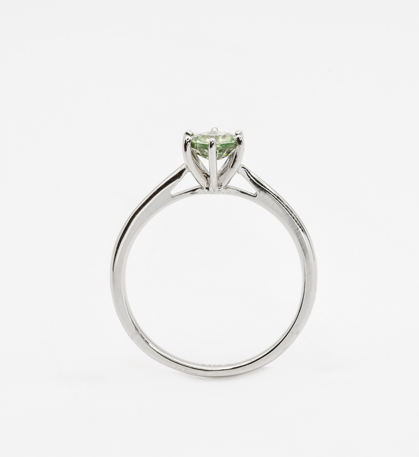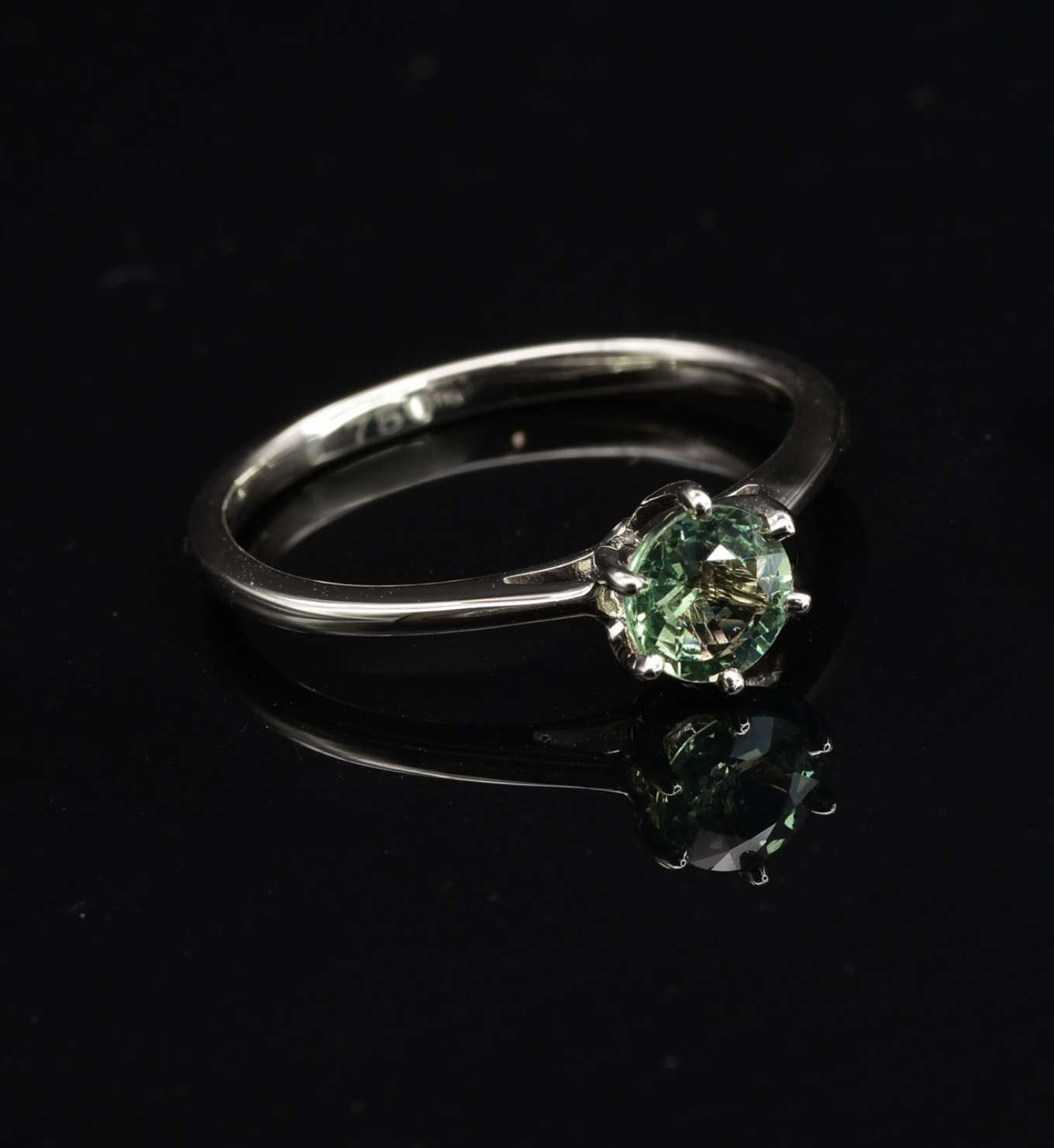 Green Sapphire Ring set with Natural Green Sapphire, size 5 millimeters diameter, 0.59 Carats.