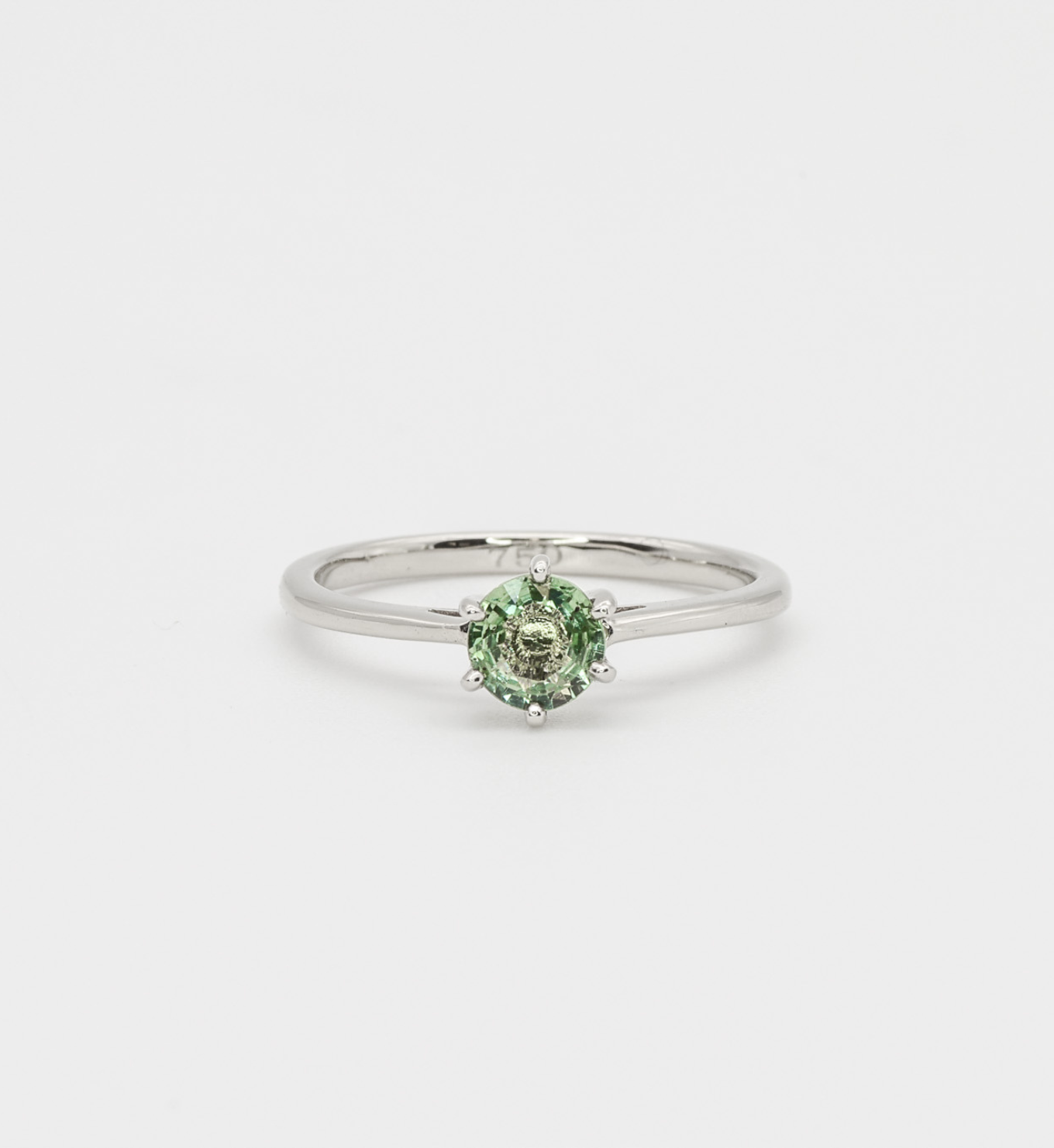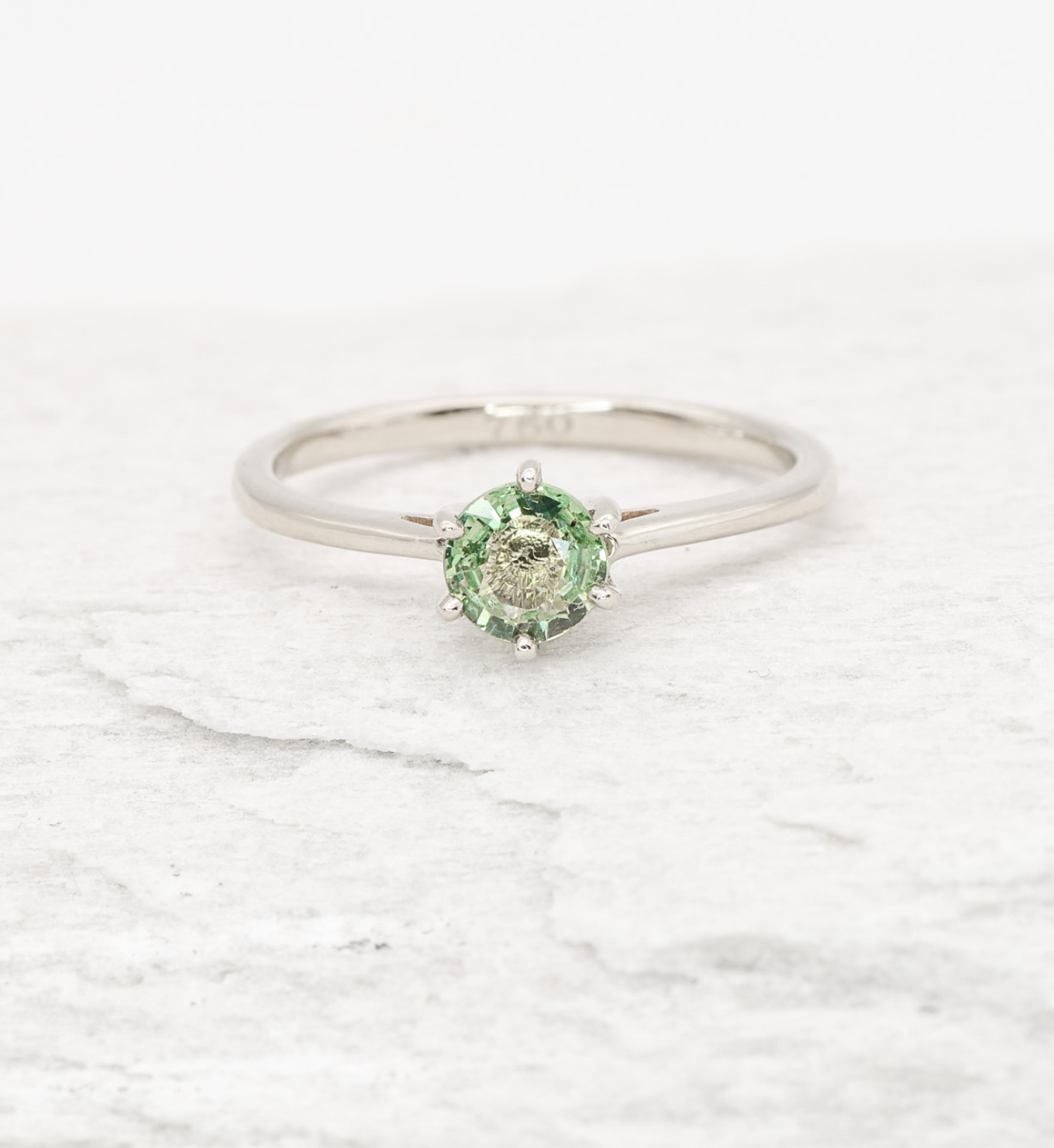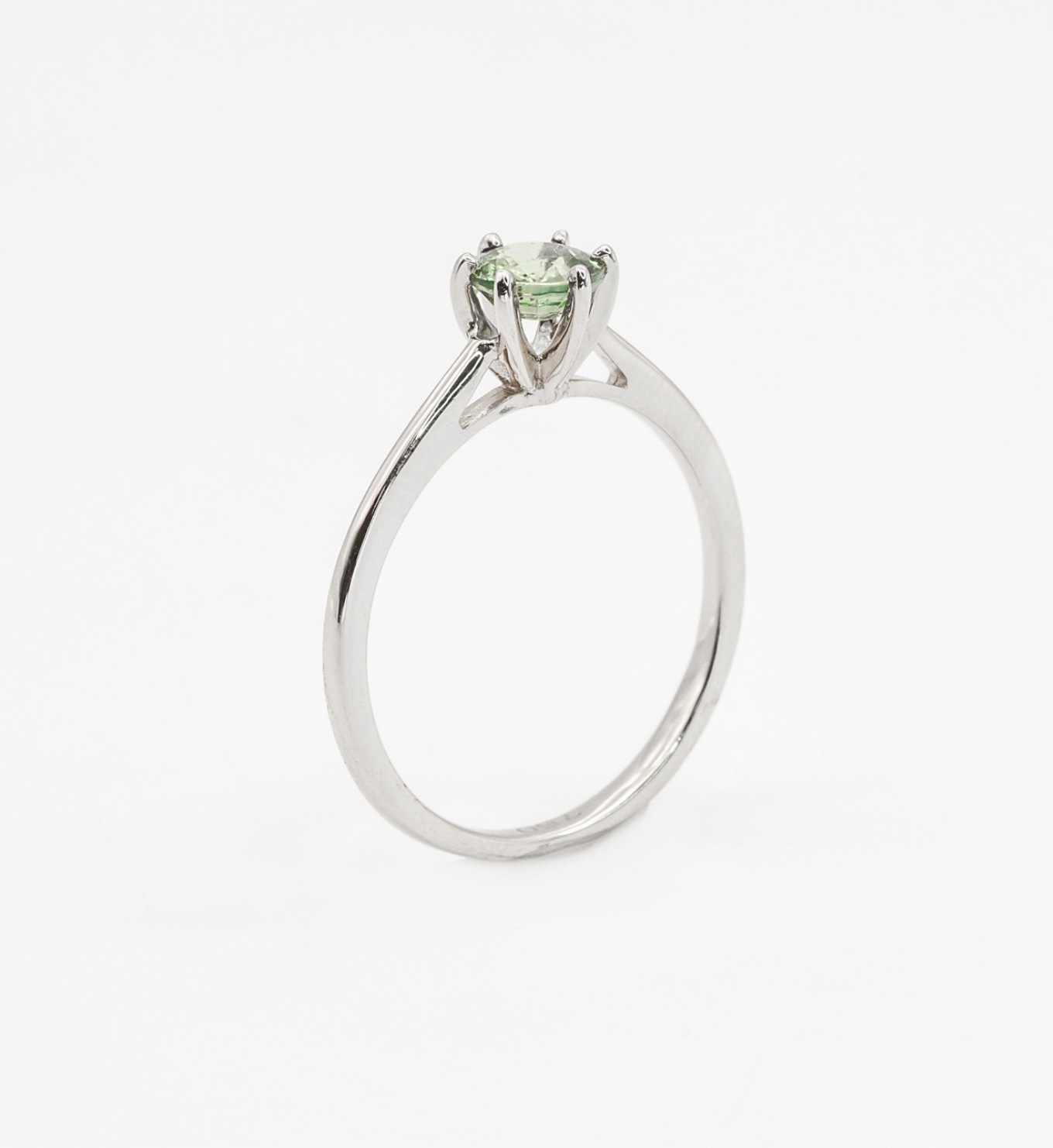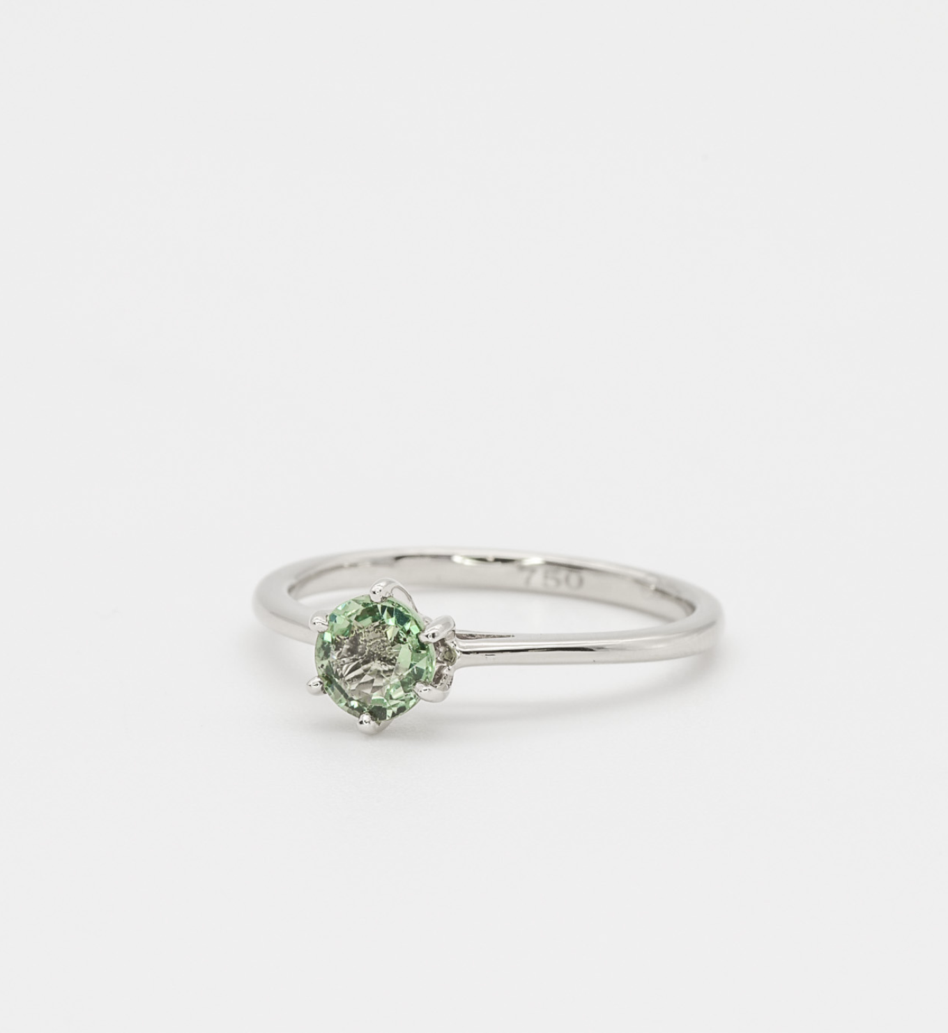 Green Sapphire Ring set with Natural Green Sapphire, size 5 millimeters diameter, 0.59 Carats.