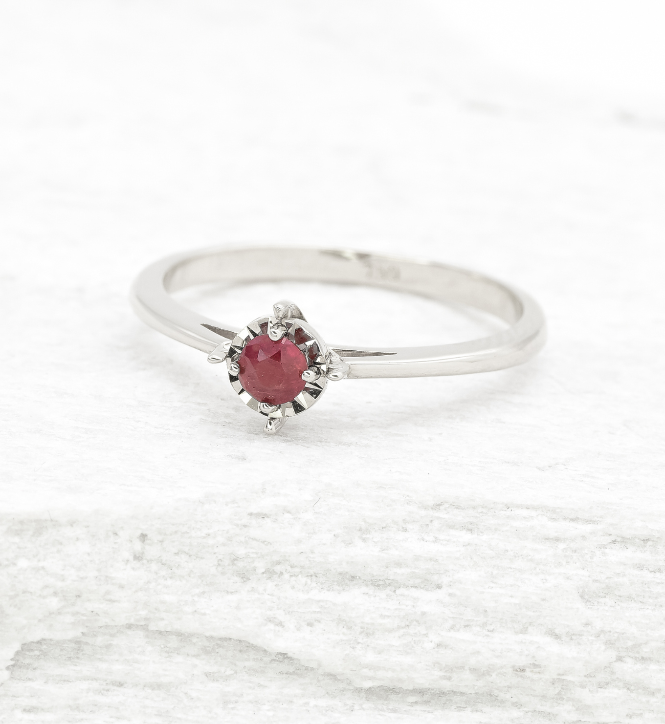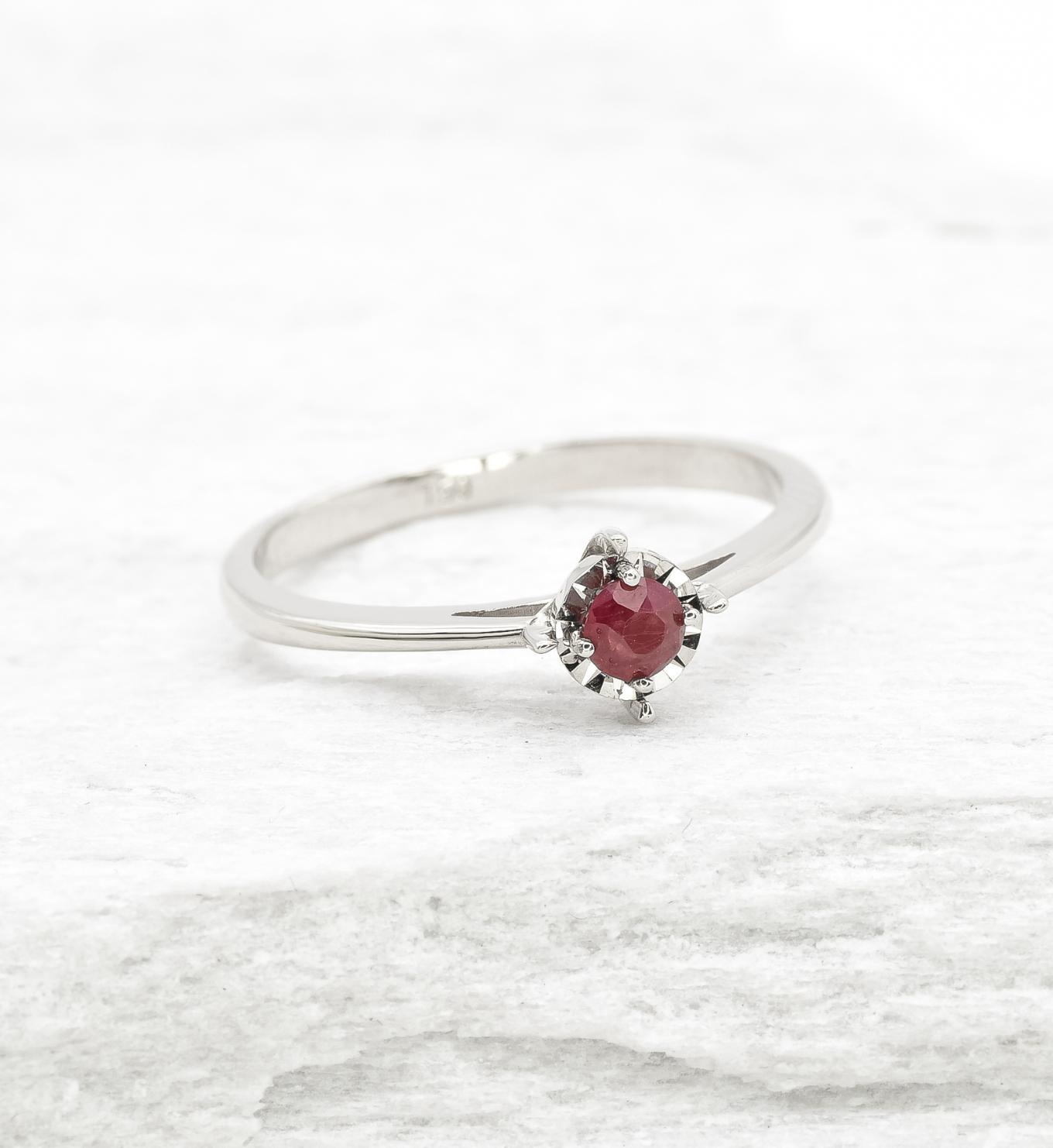 Real Ruby Ring - 18k White Gold Ring - Ruby Engagement Ring