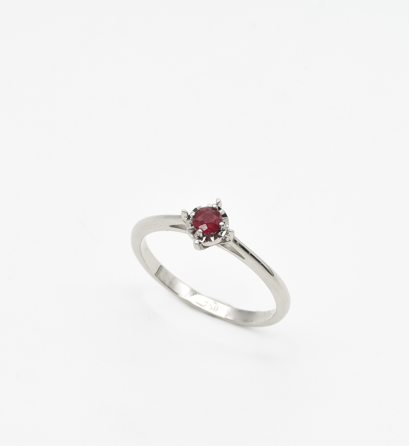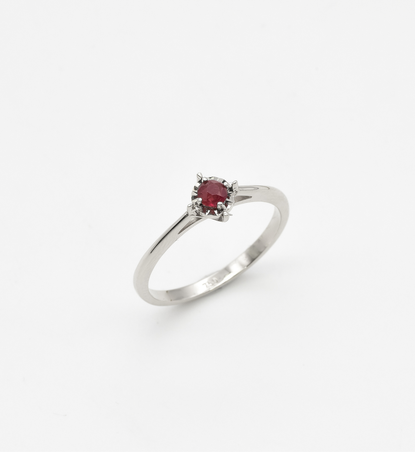 Real Ruby Ring set with Ruby, size 3 millimeters diameter, 0.11 Carats.