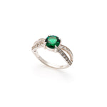 Gold Emerald Ring set with Created Emerald in a diamond cut & vivid green color, at size 7mm (1.5 Cts).