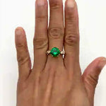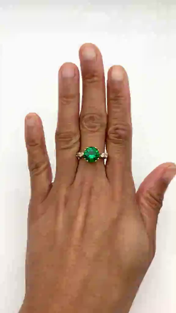 Gold Emerald Ring - Green Round Ring - VIntage Engagement Ring
