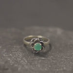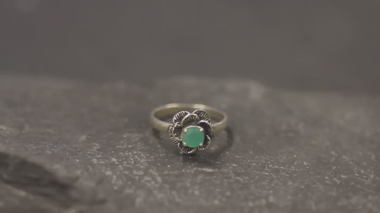 Emerald Flower Ring - Silver Rose Ring - May Birthstone Ring