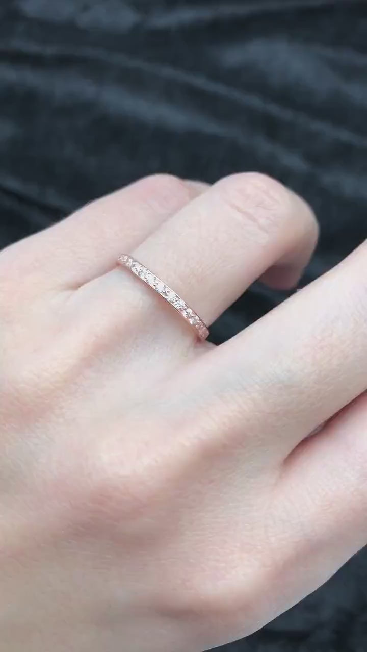 Rose Gold Diamond Ring - Sparkly Stackable Ring - Pink Eternity Band