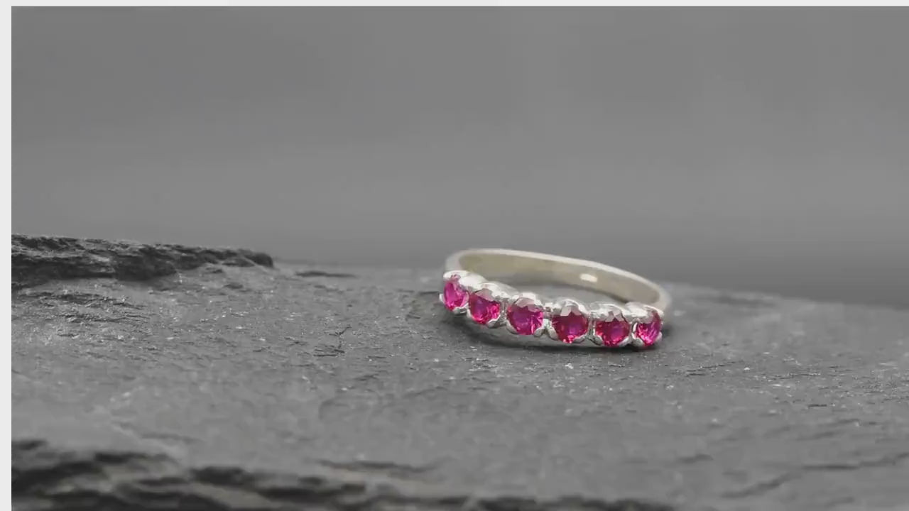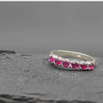 Half Eternity Ruby Ring - Silver Ruby Ring - Stackable Ring