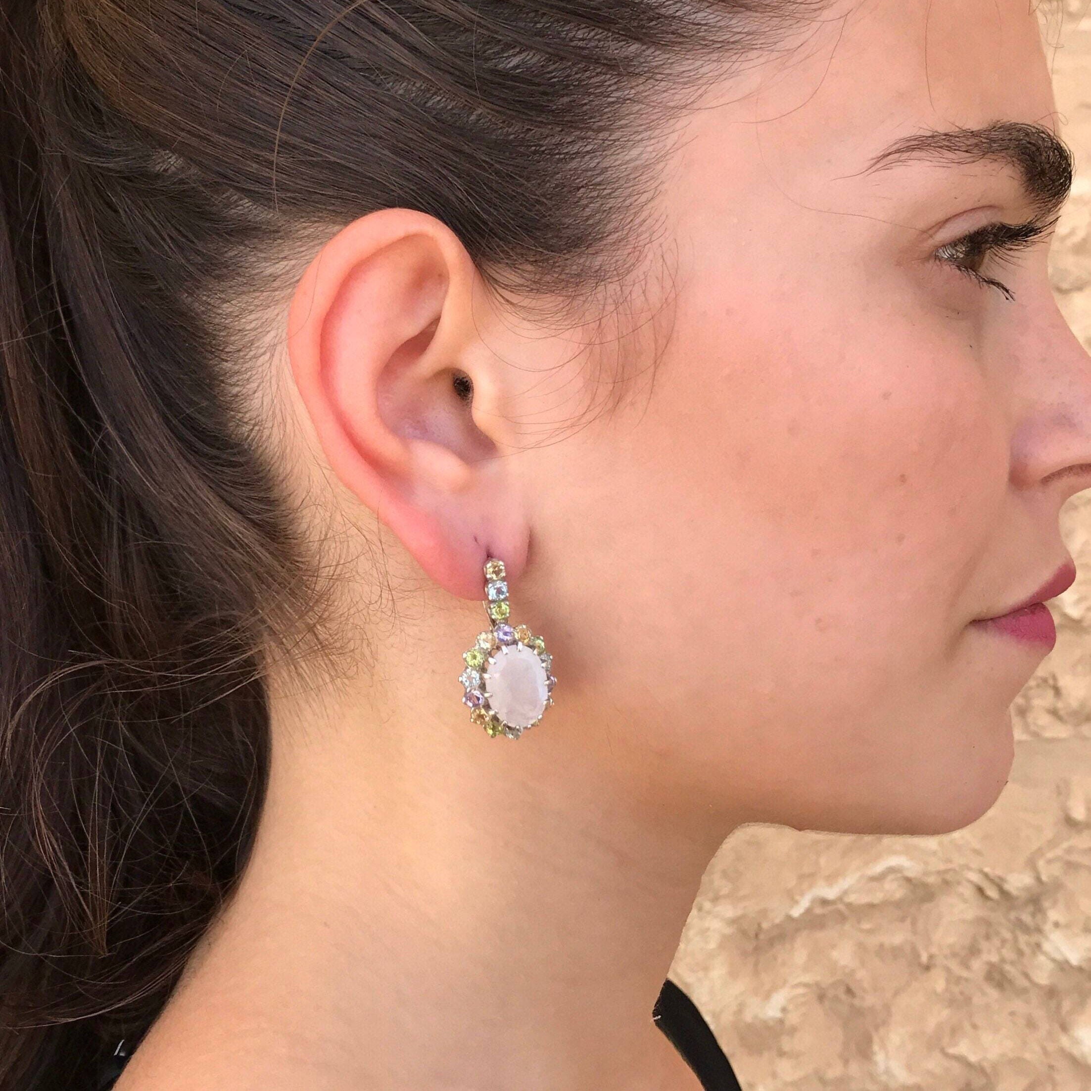 Ruby earrings in 925 sterling silver with oval created red ruby, perfect birthday gift and elegant for everyday wear.