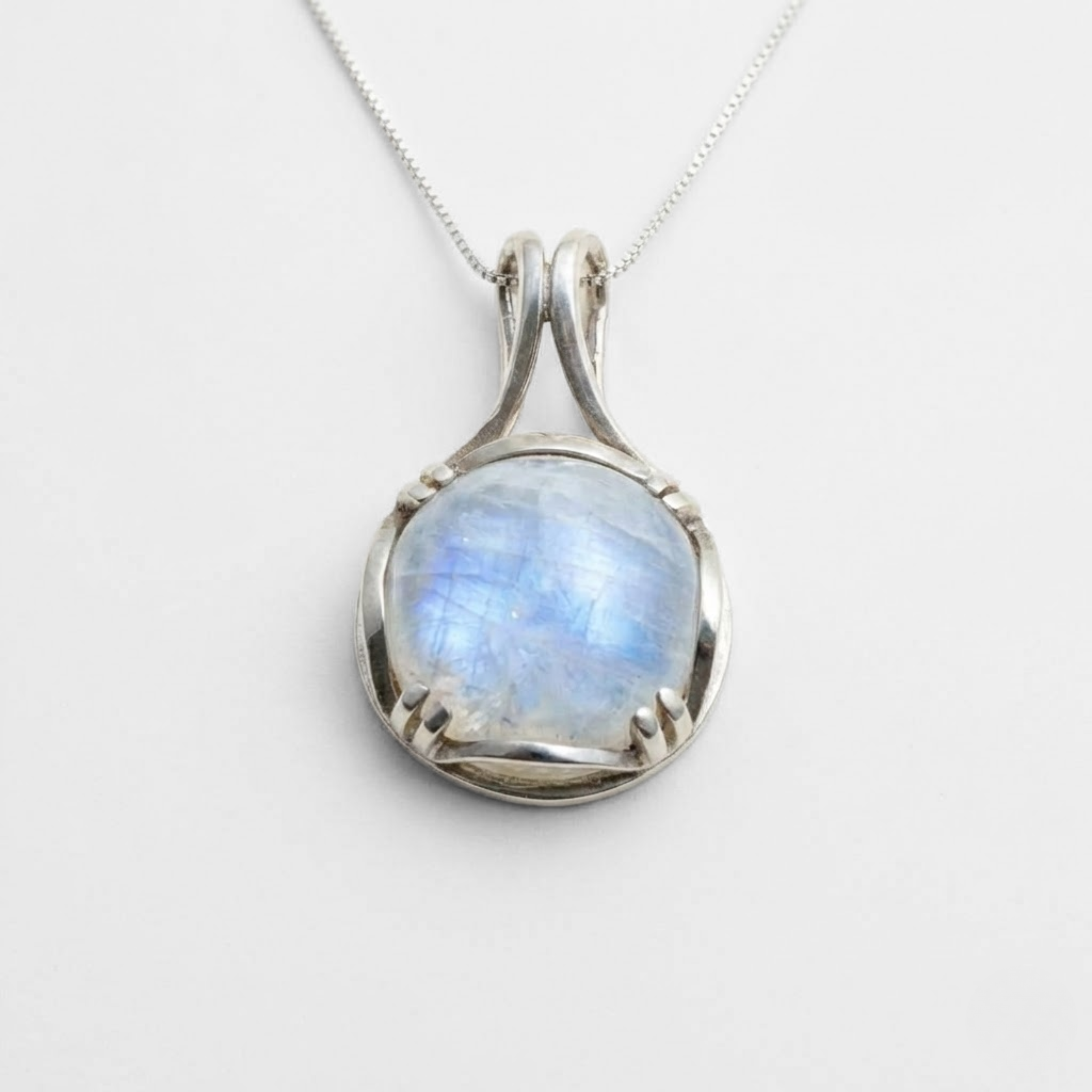 Round Moonstone Pendant, Rainbow Moonstone, Large Moonstone, June Birthstones, June Pendant, Vintage Pendants, Moonstone, Silver Pendant