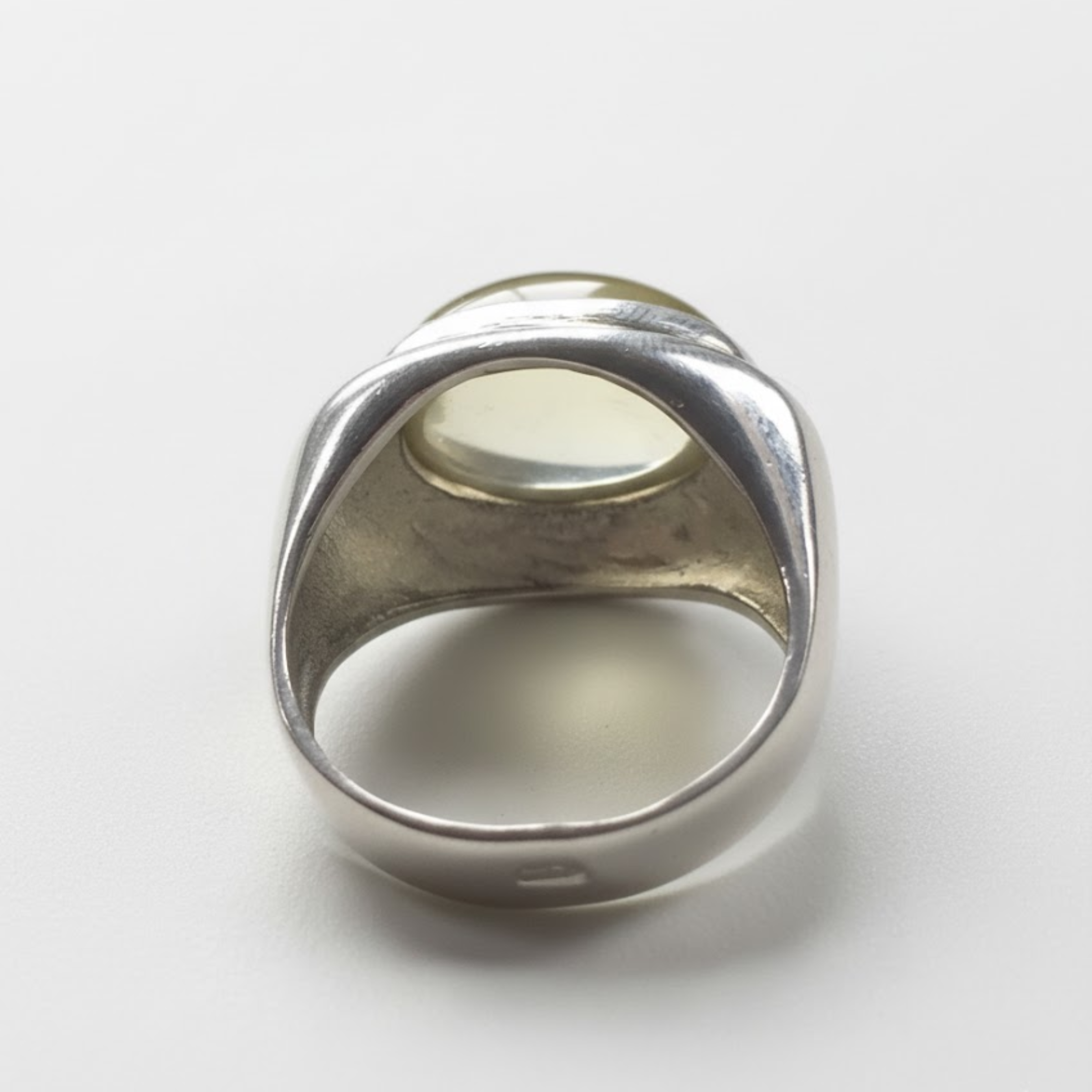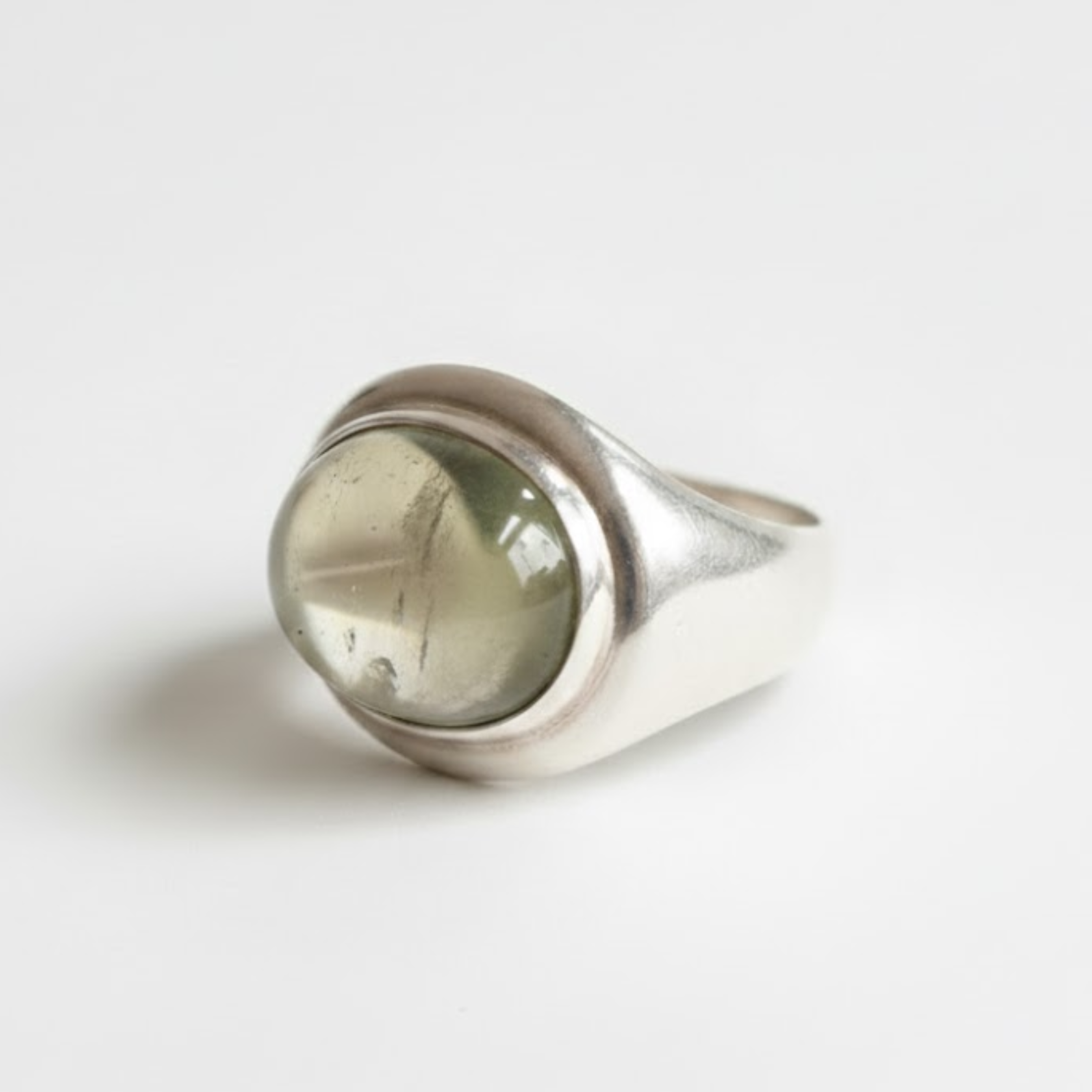 A close-up of a handcrafted gemstone ring featuring intricate details and a sparkling finish, showcasing its unique design.
