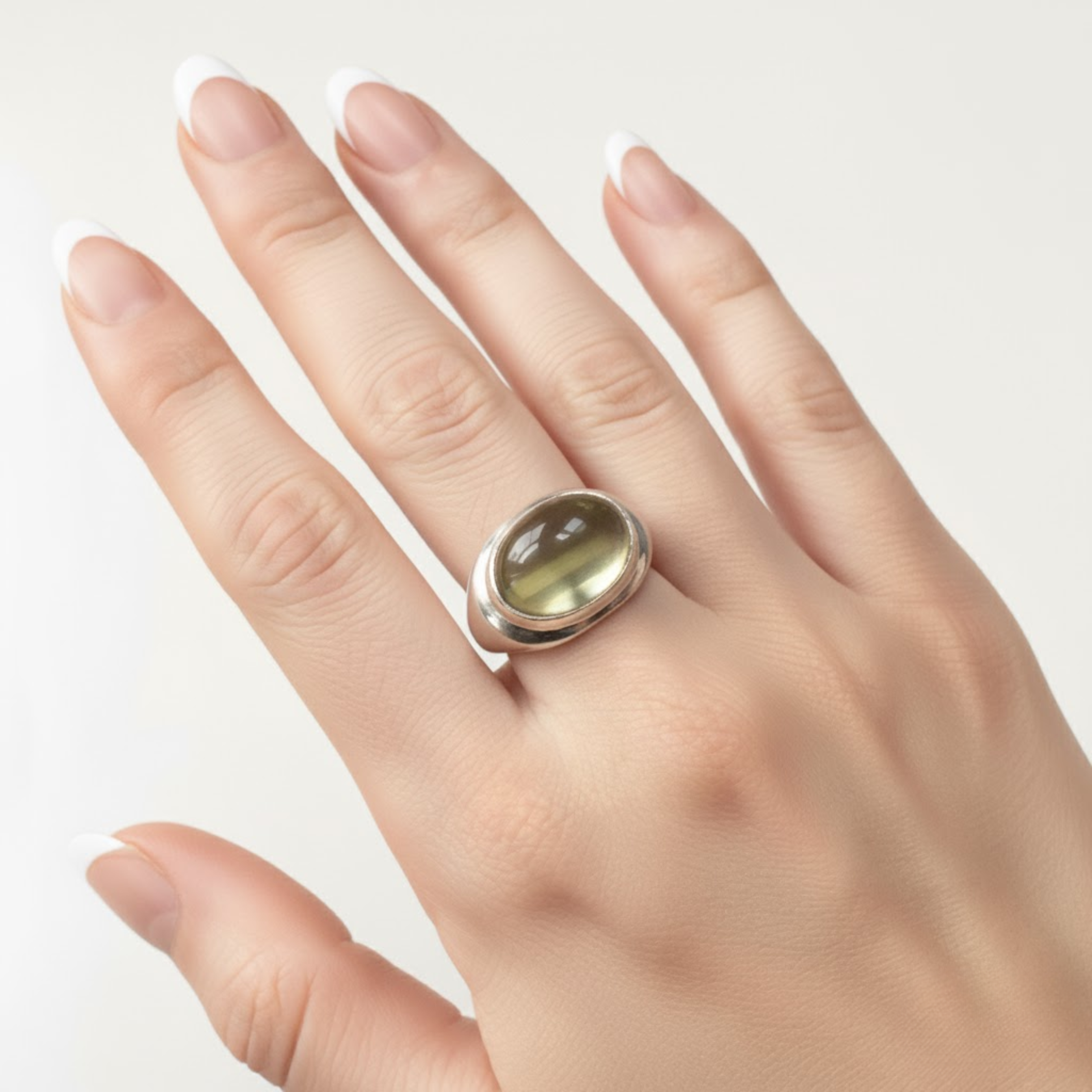 Lemon Quartz Ring set with Natural Lemon Quartz in a cabochon cut, at size 18x13mm (13 Cts) from Brazil.