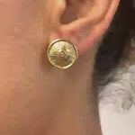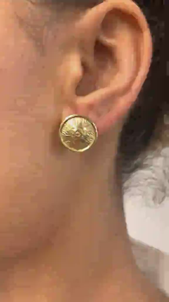 Gold Button Earrings - Round Flower Studs, Disc Earrings