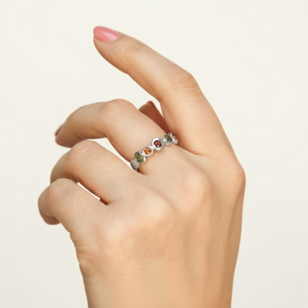 Multicolor Ring, Turmaline Ring, October Birthstone Ring, Mothers Birthstone Ring, Turmaline, Solid Silver Ring, Double Band, Colourful Gems