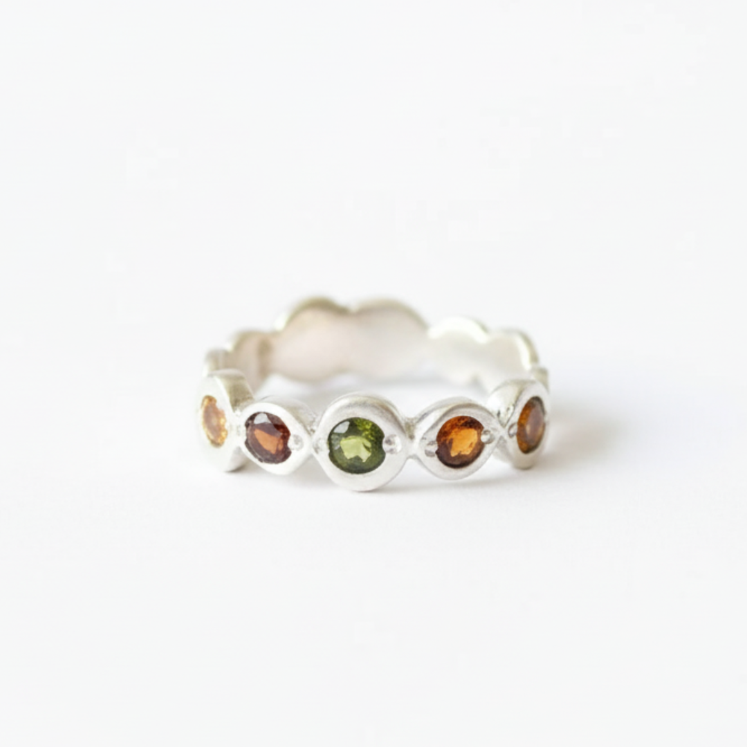 Multistone Ring, Tourmaline Band, Natural Tourmaline, October Birthstone, Half Eternity Band, October Ring, Solid Silver Band, Tourmaline