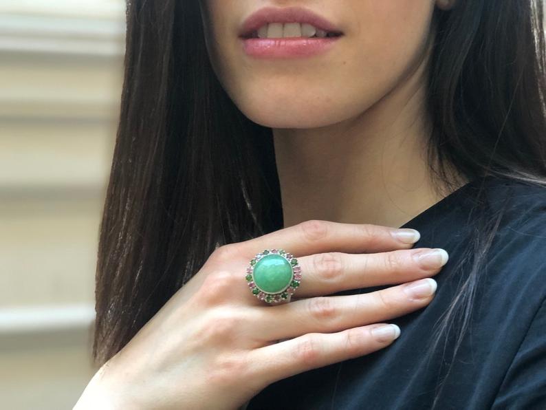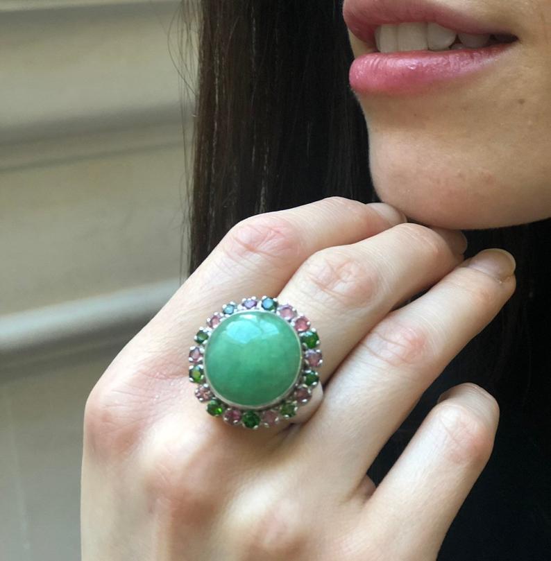 Green Tourmaline Ring, Natural Tourmaline, Cluster Ring, Green Cluster Ring, Green Chunky Ring, Vintage Ring, Berry Ring, Solid Silver Ring