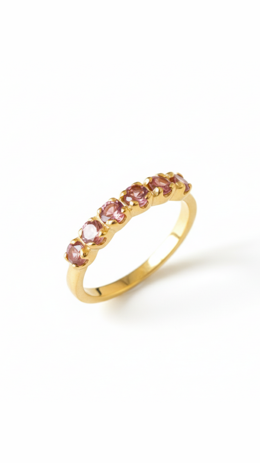 Half Eternity Gold Band - Pink Tourmaline Ring - Natural Tourmaline Ring