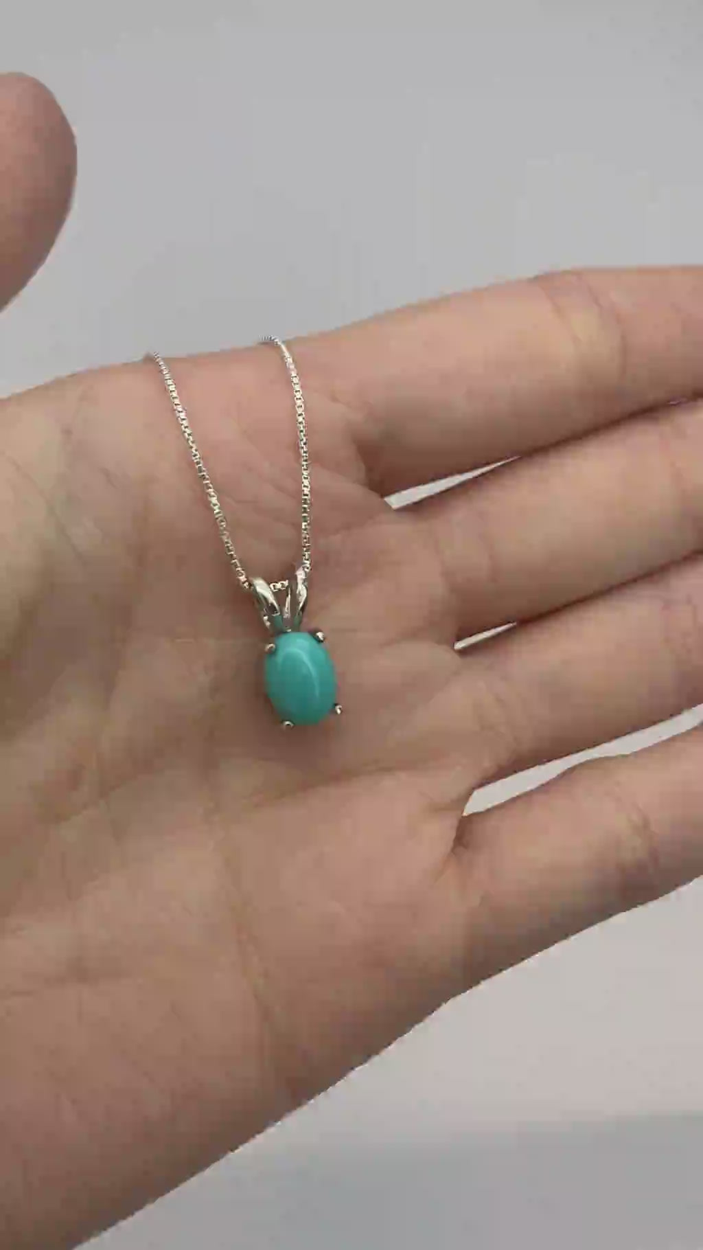 Silver Turquoise Pendan set with Natural Turquoise in a top grade & natural color, at 8x6mm (2 Cts) from Arizona.
