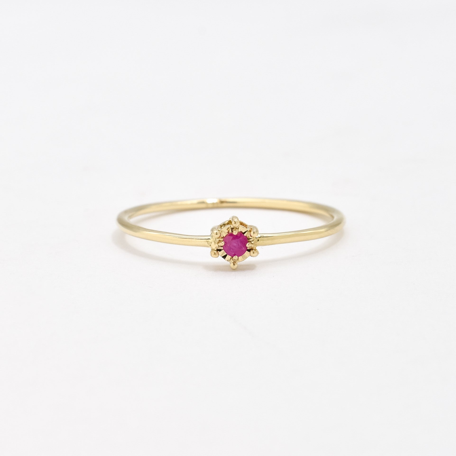Certified Real Ruby Ring set with Genuine Ruby, size 2 millimeters diameter, 0.03 Carats.