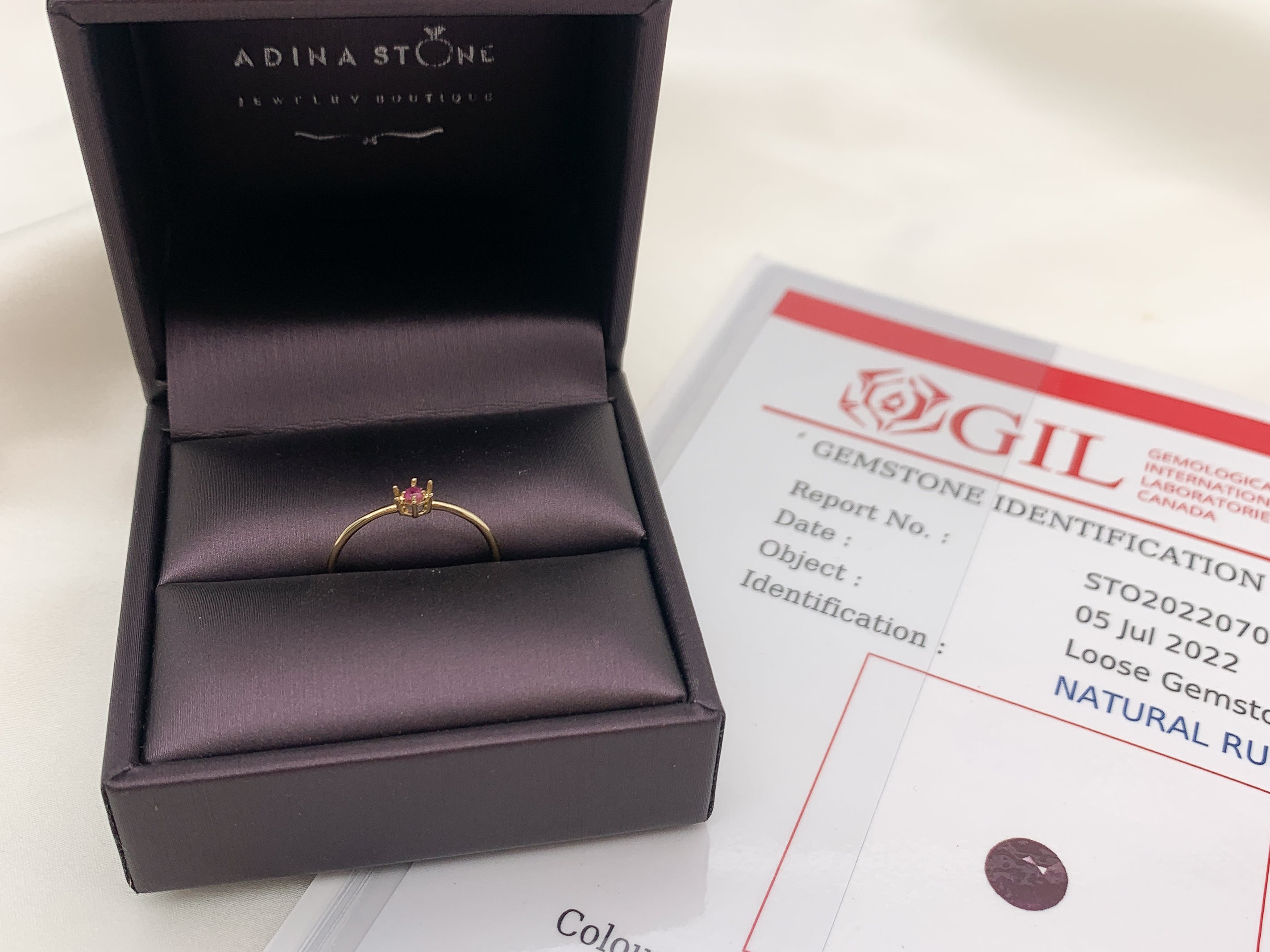 Certified Real Ruby Ring - Solid 14k Gold Ruby Ring - Dainty Solitaire Gold Ring
