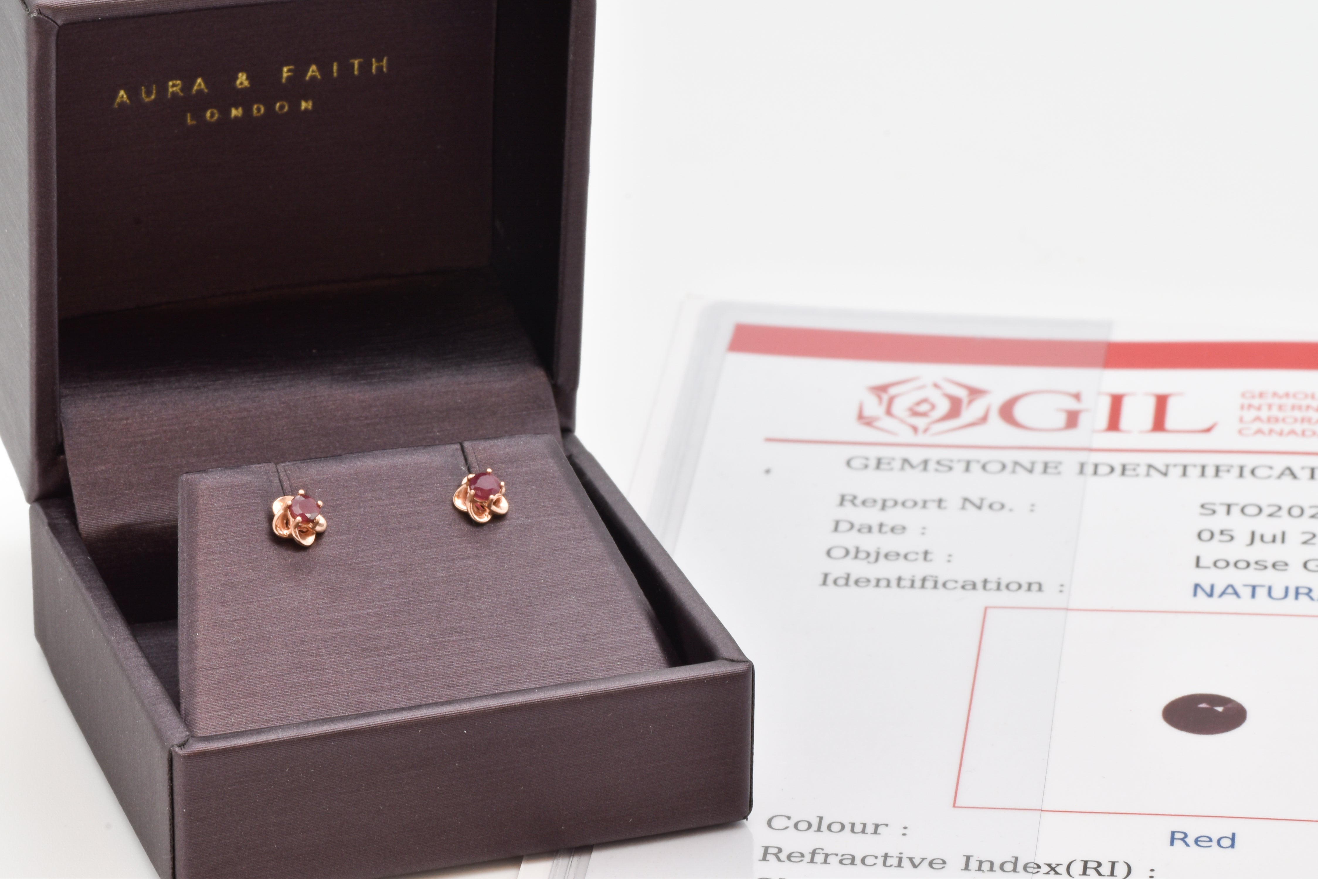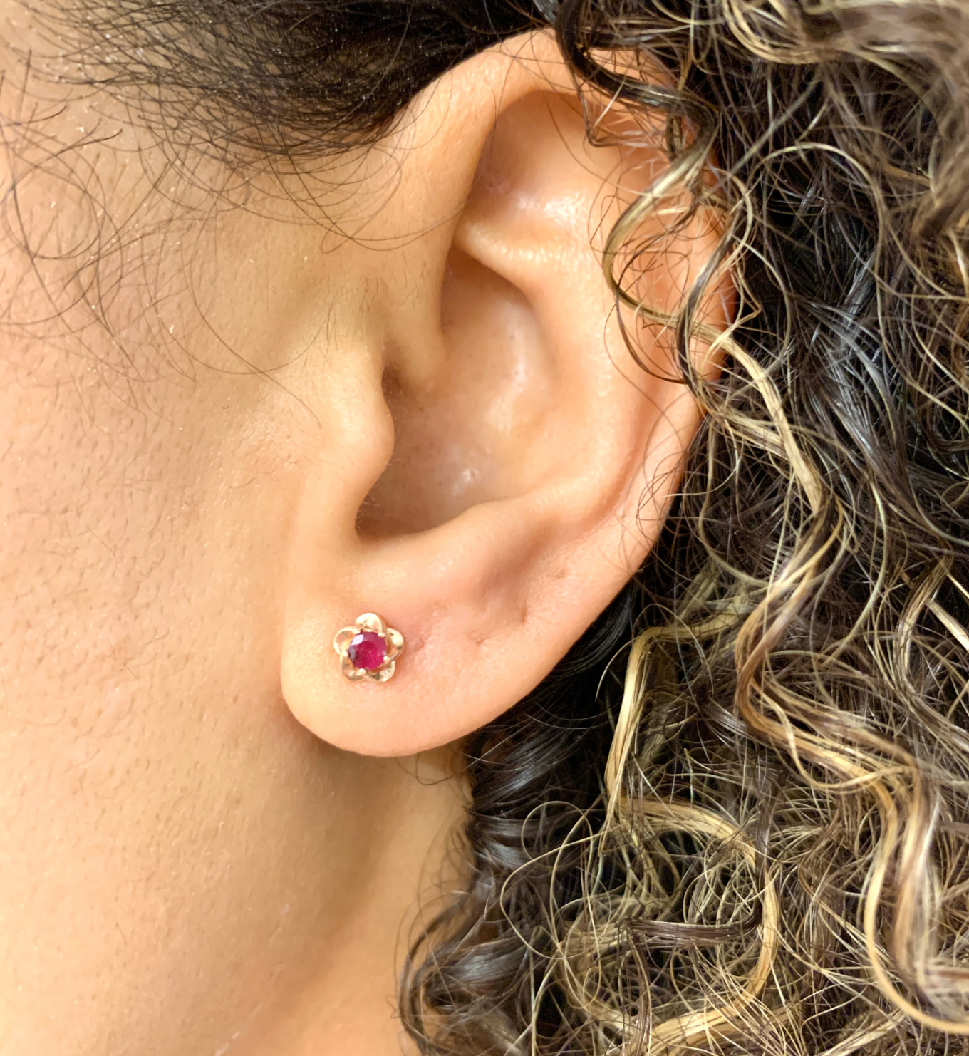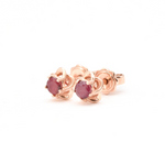 Real Ruby Studs - 14k Rose Gold Earrings - Dainty Flower Earrings