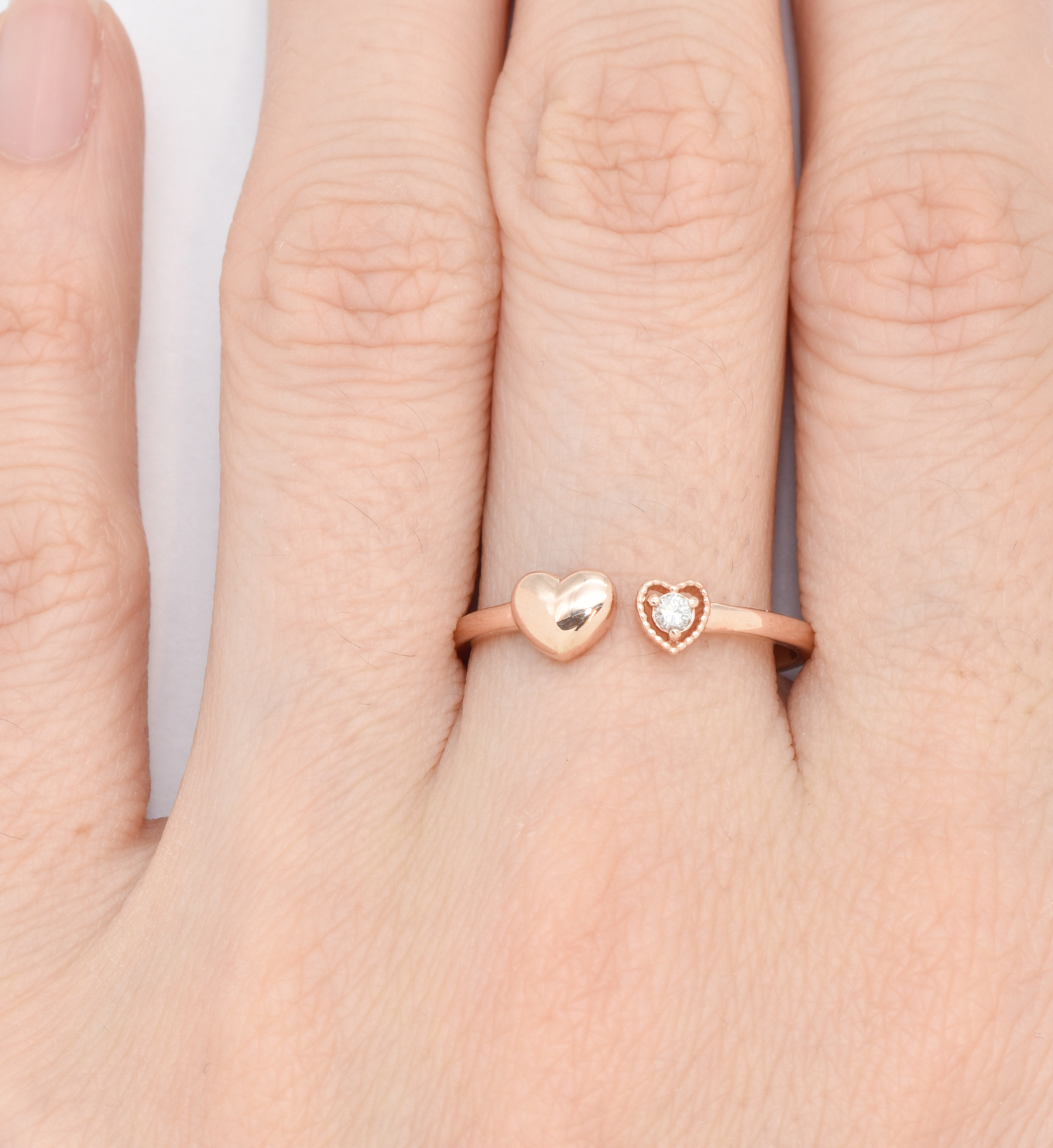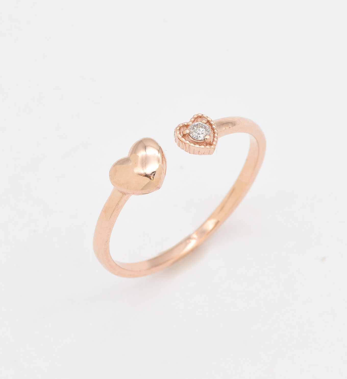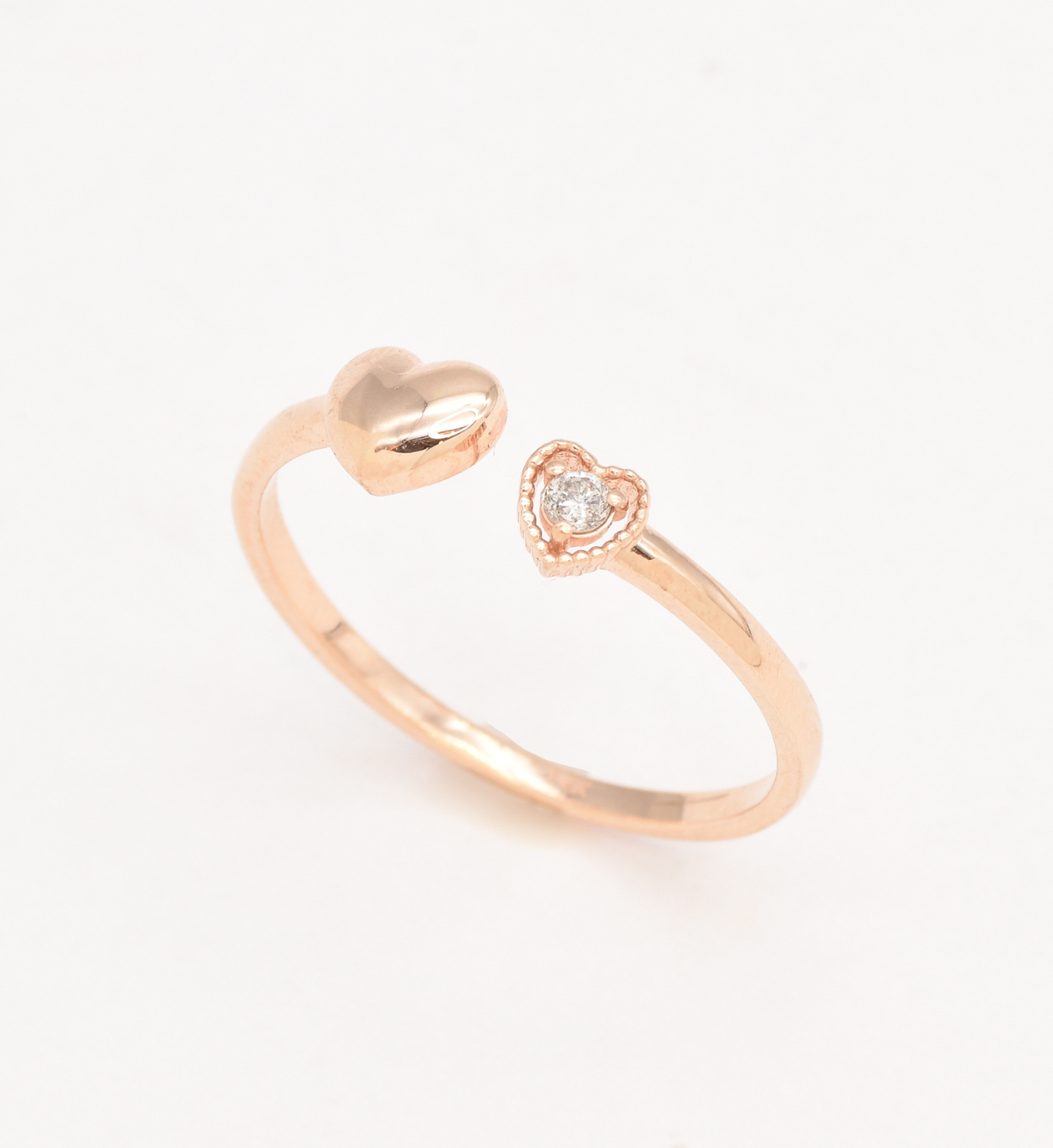 Certified Real Diamond Open Heart Ring set with Diamond, size 2 millimeters diameter, 0.03 Carats.